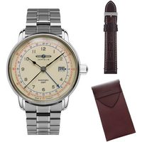 ZEPPELIN Automatikuhr LZ 126 Los Angeles Automatic GMT 7668MB-5_SET, (Set, 3-tlg., mit Wechselband und Ledertasche), Armbanduhr, Herrenuhr, Made in Germany, Mechanische Uhr
