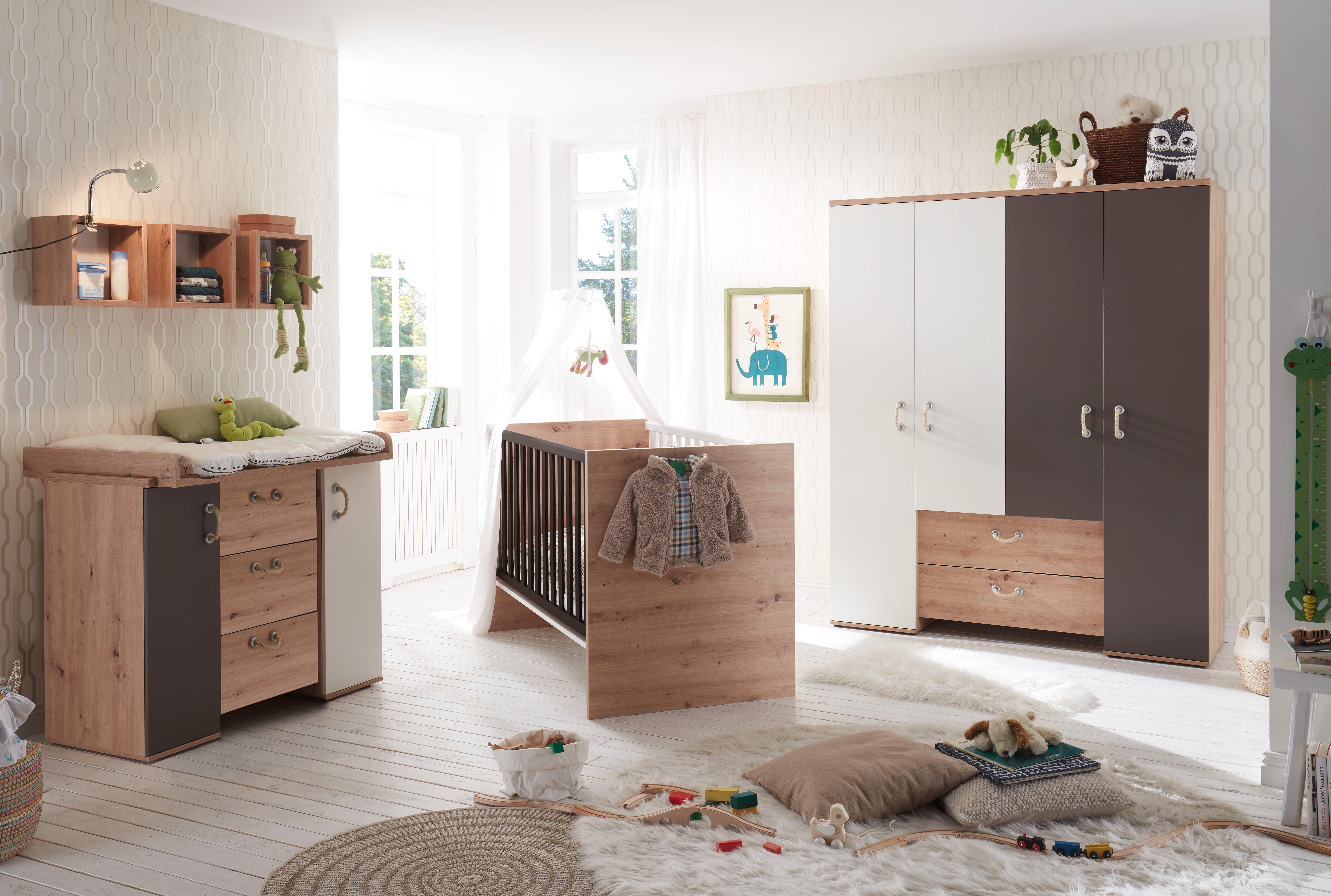 roba® Wickelkommode Anna - aus Holz - in Anthrazit mit Dekor Kent Eiche - moderne Optik, Wickeltisch 2-türig mit abnehmbarem Aufsatz - Offenes Fach & 2 Türen