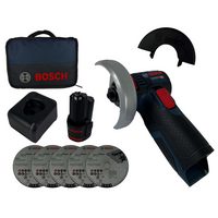 Bosch Professional Akku-Winkelschleifer GWS 12V-76, mit Akku 3 Ah und Ladegerät in Tasche inkl. 5tlg. Trennscheiben-Set