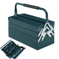BlingBin Werkzeugbox Werkzeugkasten Werkzeugkoffer Montage Werkzeugkiste (1er Set, 1 St., Gesamtmaße: 45cm x 20cm x 34,5cm, Belastbarkeit: 20kg), Metall-Werkzeugkästen mit 5 Fächer Aufklappbar, Stahl, Dunkelgrün