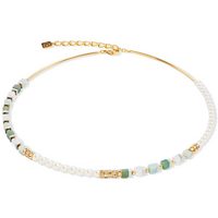 COEUR DE LION Collier Schmuck Geschenk Edelstahl Asymmetrie Würfelkette, Made in Germany - mit Kristallglas - mit Süßwasserzuchtperle