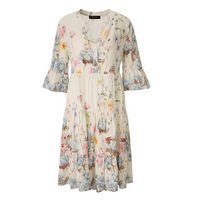Marc Cain Midikleid Neutral Affinity Premium Damenmode Plissiertes Midikleid mit Blumenprint, fließender Stoff, Bindegürtel