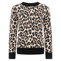 Zwillingsherz Strickpullover Leo + colored edges Rundhals,aus reinem Kaschmir mit Leomuster und farbigem Bündchen
