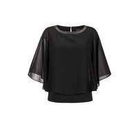 GOLDNER Shirtbluse Edle Chiffonbluse, U-Boot-Ausschnitt Herbsttunika mit Glitzersteinen am Ausschnitt und weiten 3/4-Ärmeln