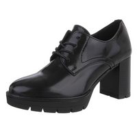 Tipp: Wenn es kühler wird, sind dunkle Schnürpumps mit Blockabsatz und Zierschnürung eine schöne Alternative zu dem weit ausgeschnittenen Grundmodell.