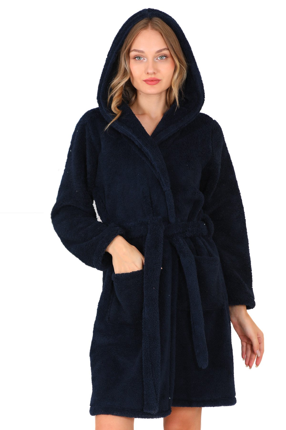 Bongual Bademantel Saunamantel Flausch Morgenmantel, Gürtel, mit Kapuze