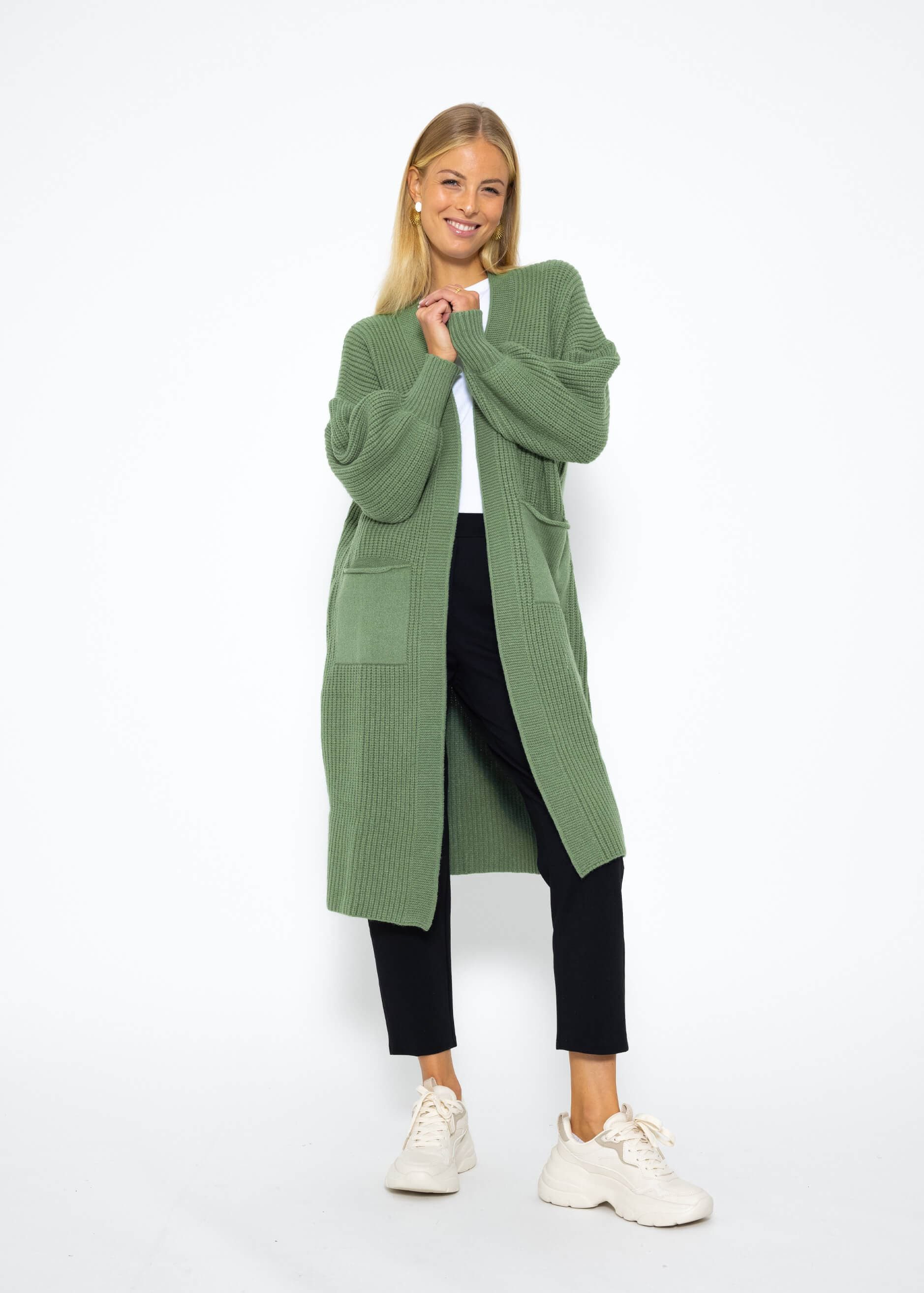 Der lange Cardigan zeichnet sich durch sein extrem weiches Strickmaterial aus. Durch seine lockere Passform passt er sich jeder Figur an und sorgt für einen casual aber modernen Look. Er lässt sich sowohl im Alltag als auch bei besonderen Anlässen gut tragen und ist das ideale Kleidungsstück für wechselhaftes Wetter.