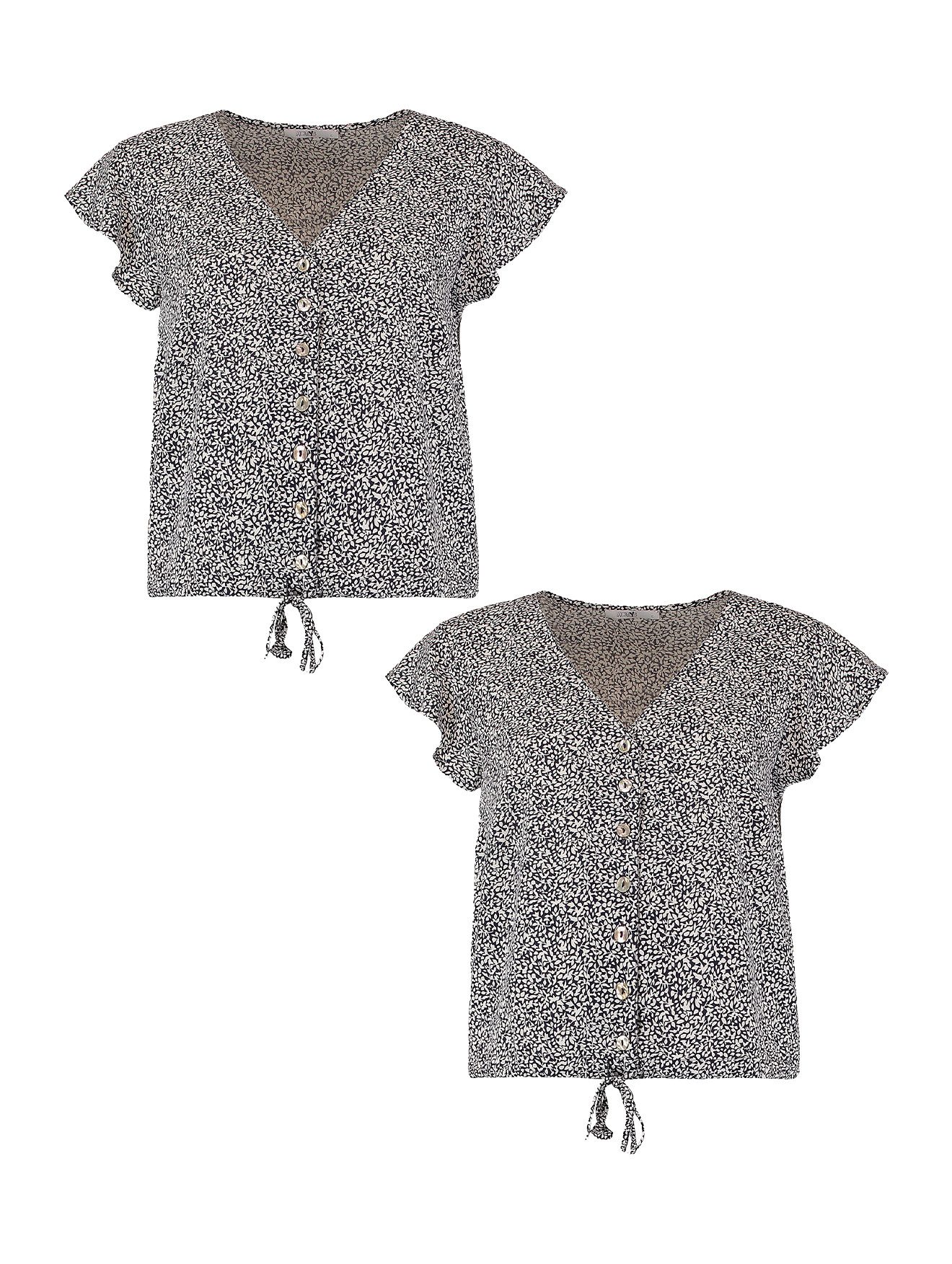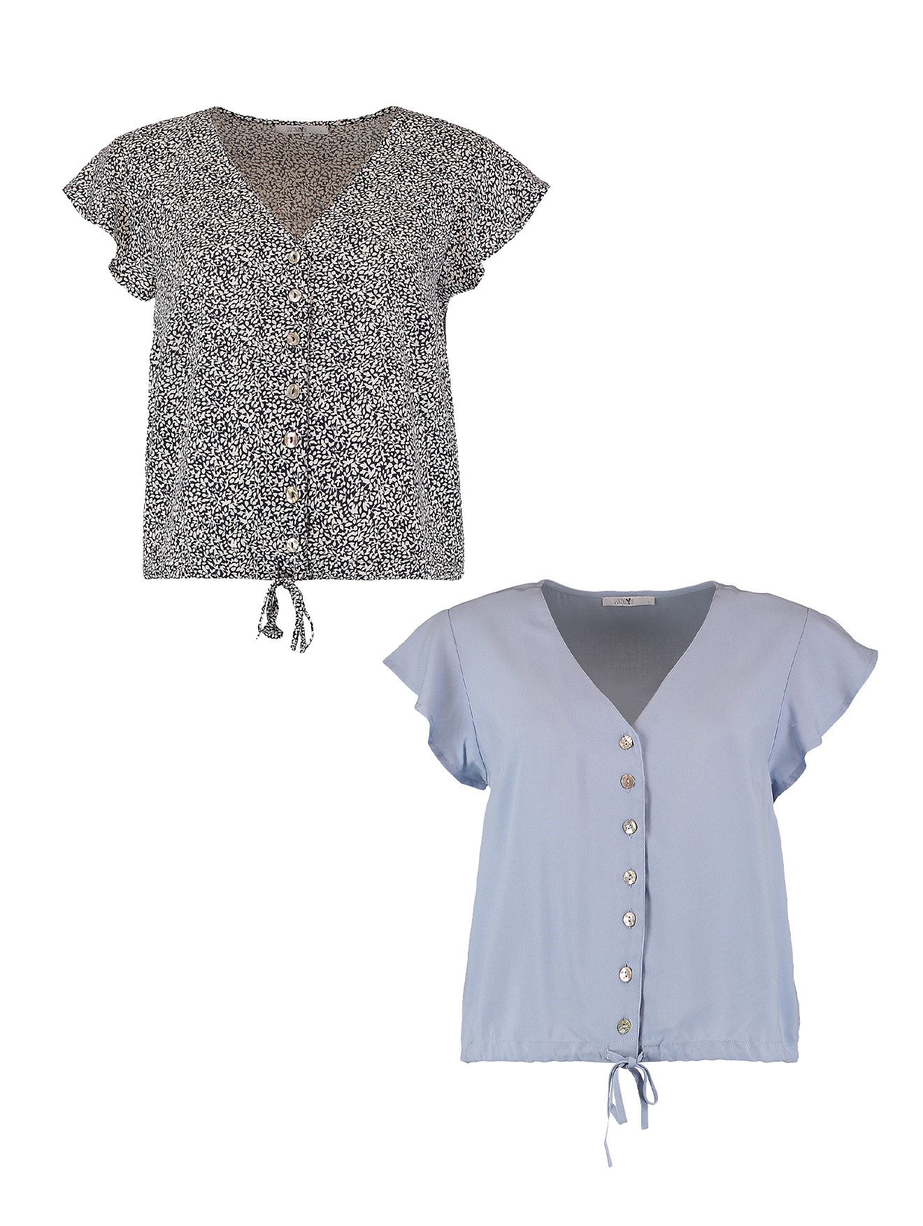 Blusenshirt 2er-Set Kurzarm mit Wellenkante V-Ausschnitt