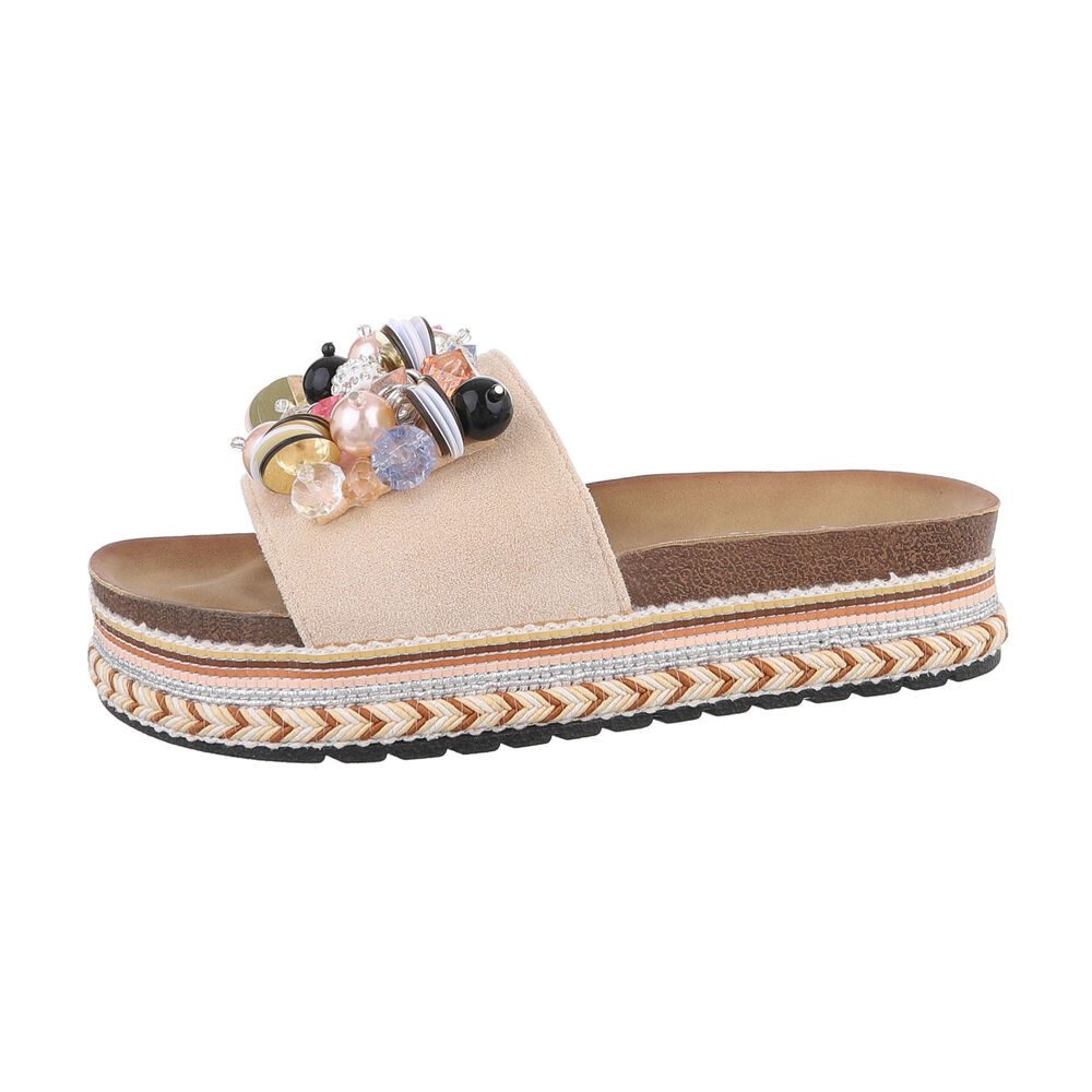 Ital-Design Damen Mules Freizeit Plateausandaletten (86017097) Flach Pantoletten in Beige