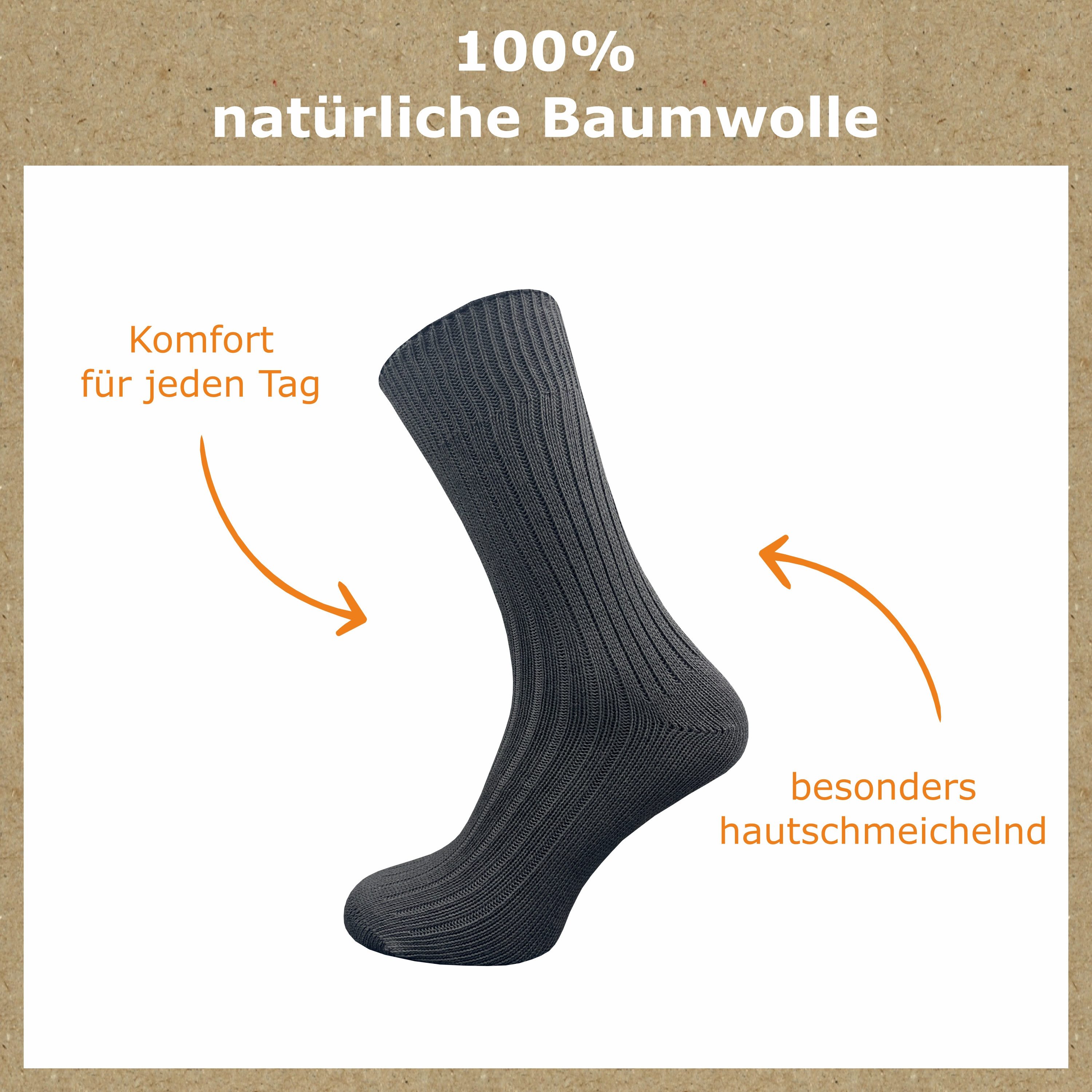 Komfortsocken "Natur" aus 100% reiner, naturbelassener Baumwolle für Damen & Herren