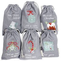 Dunedesign Geschenkpapier 6er Set Nordic Geschenkbeutel Weihnachten 32x32 cm, Stoffbeutel Groß zum Befüllen