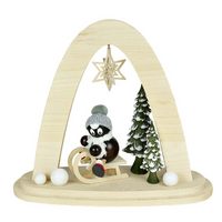 RATAGS LED Schwibbogen Massivholzbogen, Pitti auf dem Schlitten, NEU B 35cm/H 29,5cm/T 14cm, Handwerkskunst original Erzgebirge