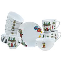 CreaTable Kombiservice Luna Socken, Kombi-Service 16-tlg (16-tlg), 4 Personen, Porzellan, Winterlicher Dekor mit lustigen Sockenmotiven