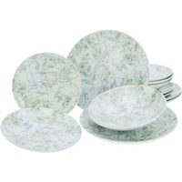 CreaTable Kombiservice Fiore, Kombi-Service 16-tlg (16-tlg), 4 Personen, Steingut, Blütendekor, Blätterdekor