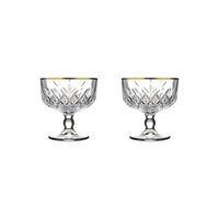 Pasabahce Dessertschale Elysia-Golden-Touch, Glas, (Packung, 2-tlg), Eis-Becher aus Glas, Schale auf Fuß