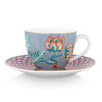 PiP Studio Espressotasse Flower Festival Espressot. m.U. Light Blue 120ml, Porzellan, Espresso Cup & Saucer Flower Festival Light Blue120ml