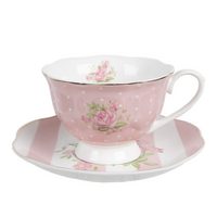 Clayre & Eef Tasse Vintage Sammeltasse Tasse mit Untertasse romantisch Rosen 200 ml, Vintage Sammeltasse Tasse mit Untertasse romantisch Rosen 200 ml