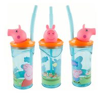 Peppa Pig Kinderbecher Peppa Pig Wutz 3D Deckel Kinder Trinkbecher Becher Halm 360ml, BPA-Frei