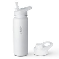 Vinsun Isolierflasche Edelstahl Trinkflasche 750ml Strohhalm - 2 Deckel Thermoflasche, BPA frei, doppelwandig, auslaufsicher, bruchsicher, geruchsneutral
