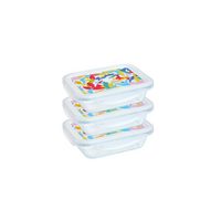 PYREX Frischhaltedose Pyrex Cook & Go Lunchbox Set 3-teilig mit bedrucktem Deckel, (Set, 3-teiliges Set, ineinander stapelbar), Mit bedrucktem Deckel, BPA-frei, Made in France