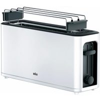 Braun Toaster PurEase HT 3110 WH - 2 Langschlitze, 7 Stufen, Auftau- Aufwärmfunktion, 1 langer Schlitz, für 2 Scheiben, 1000 W, 1.000 W, Kunststoff, Automatische Abschaltung, Brötchenaufsatz