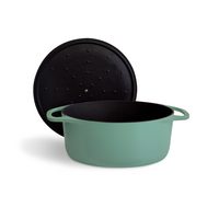 Springlane Bräter Cocotte Mint mit Deckel, Gusseisen, 6 L, Ø 28cm, Rund, Gusseisen emailliert, Ideale Feuchtigkeitsverteilung durch Tropfenstruktur
