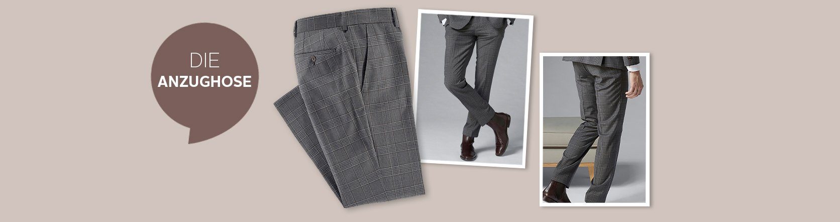 Ob du einen eher schlanken oder weiten Hosenschnitt bevorzugst, ist letztlich eine Geschmacksfrage. Wichtig ist, vor allem die Länge der Hose: Weit geschnittene Modelle sollten etwa bei der Absatzkante des Schuhs enden, während schmale Hosen auf dem Schuh abschließen und eine kleine Falte nach vorn werfen sollten. Die besonders moderne Interpretation einer Anzugshose geht nur bis zum Knöchel, so dass die Socken herausblitzen. Tipp: Beim Hinsetzen darf die Hose höchstens bis zum Wadenansatz rutschen, sonst ist sie zu kurz.