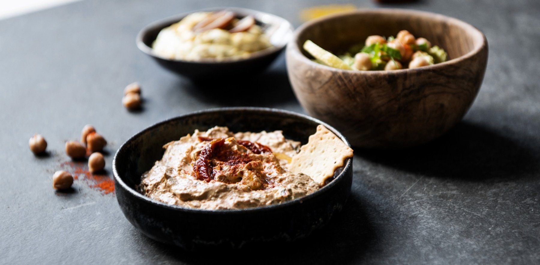 Zubereitung: Gieße den Saft der Kichererbsen ab. Einen bis zwei Esslöffel der Kichererbsen sammelst du in einer Schüssel (für die Dekoration). Den Rest schüttest du in den Mixer. Püriere die restlichen Zutaten mit den Kichererbsen – bis auf den Zitronensaft, den gibst du abschließend zum cremigen Dip hinzu. Schmecke mit Salz und Pfeffer ab.