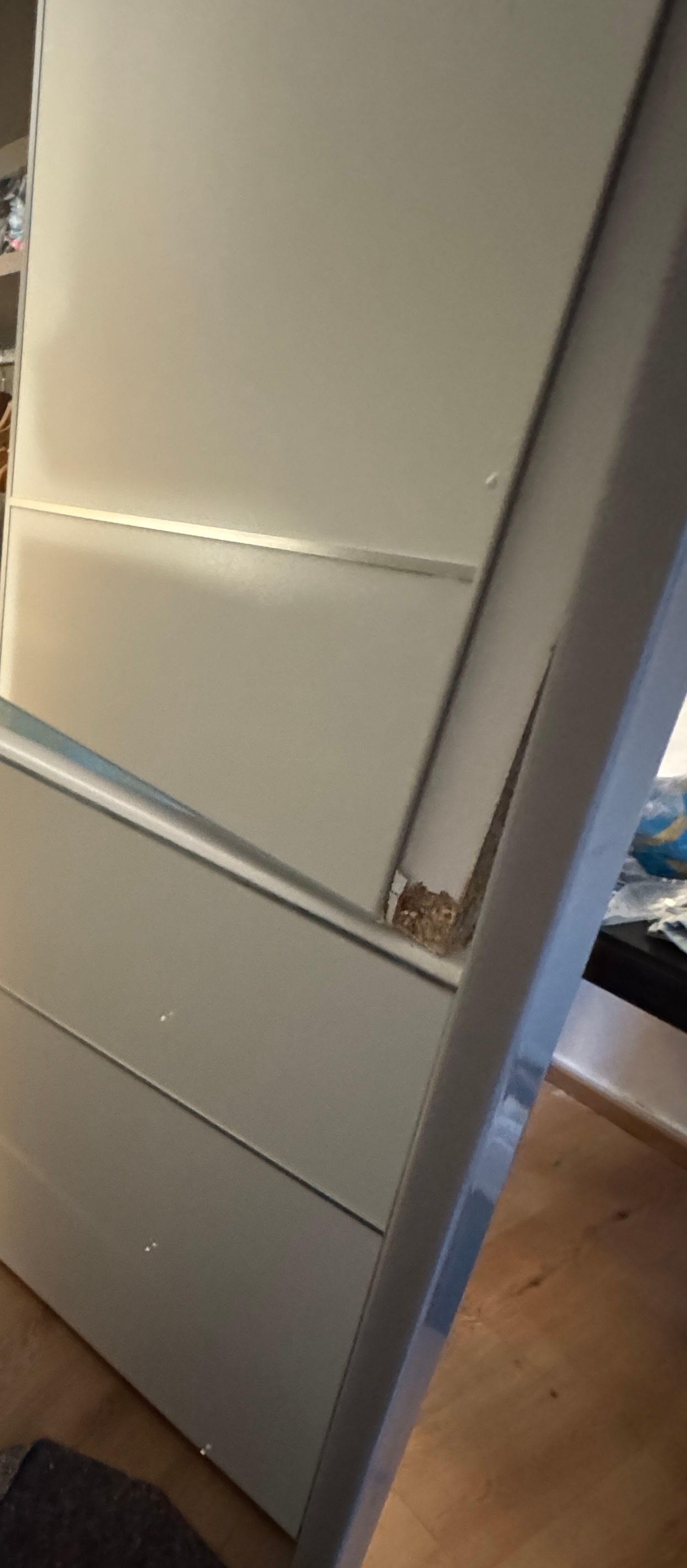 Die Spediteure haben mich auch nochmal netter weise darauf aufmerksamgemacht das am Schrank schon was zu bruch gegangen war.