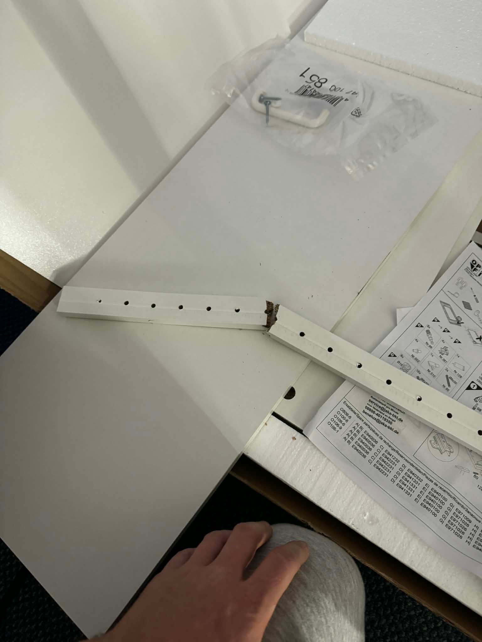 an der Tür Löcher zu groß gebohrt, so dass sich die billigen Plastespreizdübel sich einfach mit drehen. Festigkeit erhält das Teil nur durch die Rückwand. An den Nägel hat man nicht gespart. Nur Vorsicht,