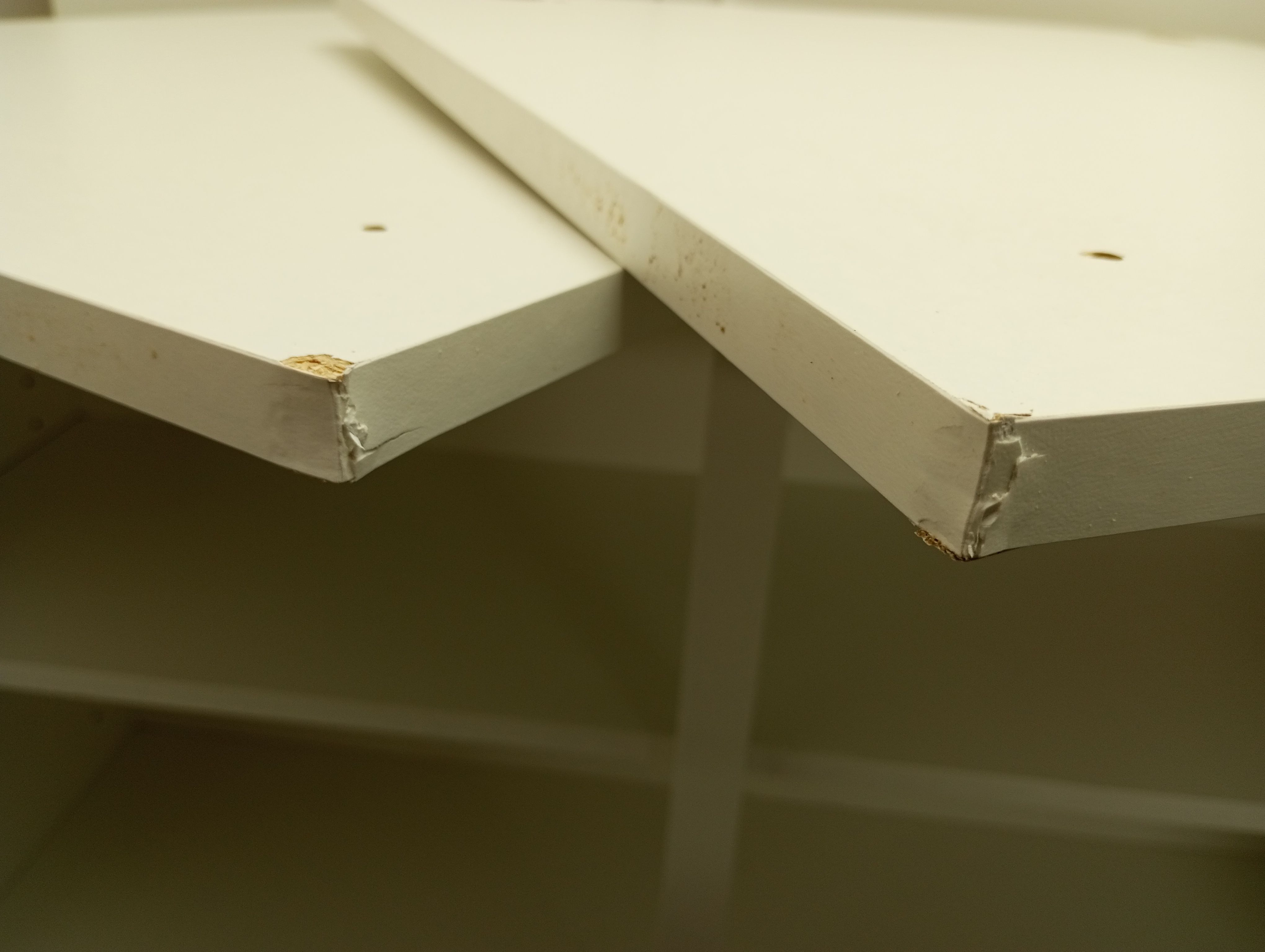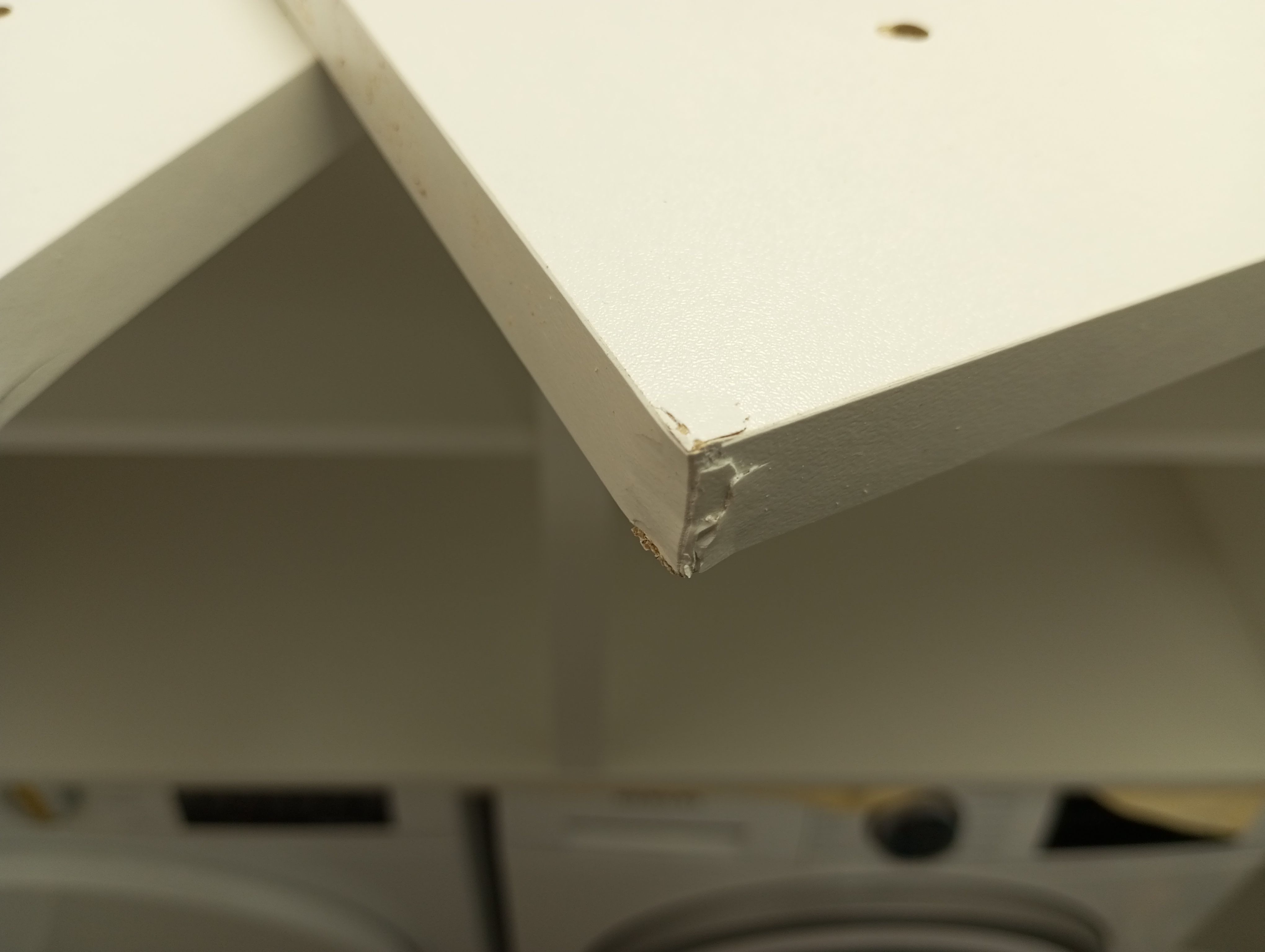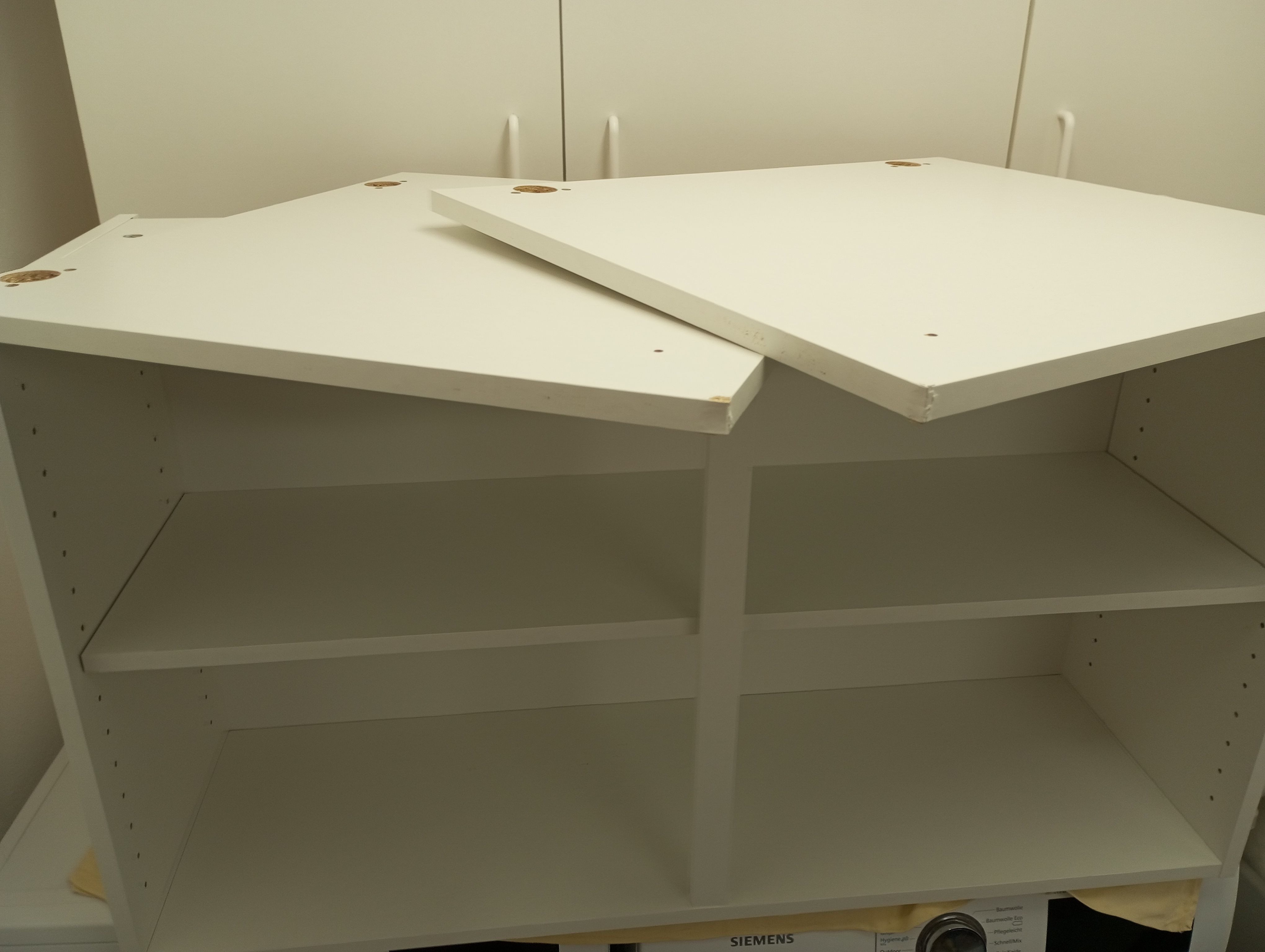 Negativ: an den Türen sind kleine Dellen am Rand sodass es dort leicht abgeplatzt ist. Wenn man die Schrauben beim zusammenbauen zu fest anschraubt, splittert das Holz. Werde mir aber trotzdem noch weiter Schränke davon kaufen