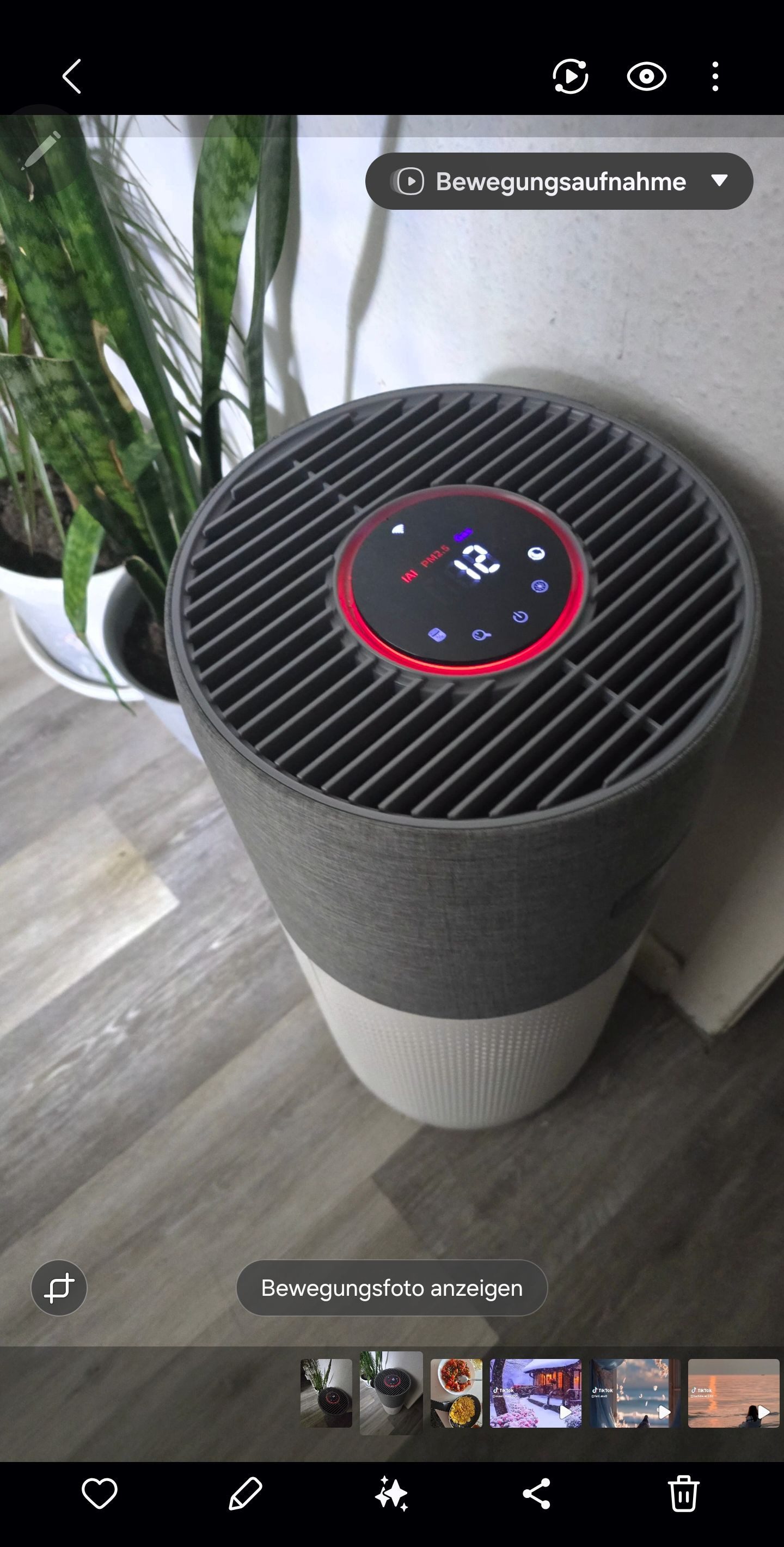 Der Lüfter reinigt die Luft in sehr kurzer Zeit und merklich von Pollen und sonstigen Luftverschmutzung und zeigt dies direkt auf dem Gerät oder auch per App an.