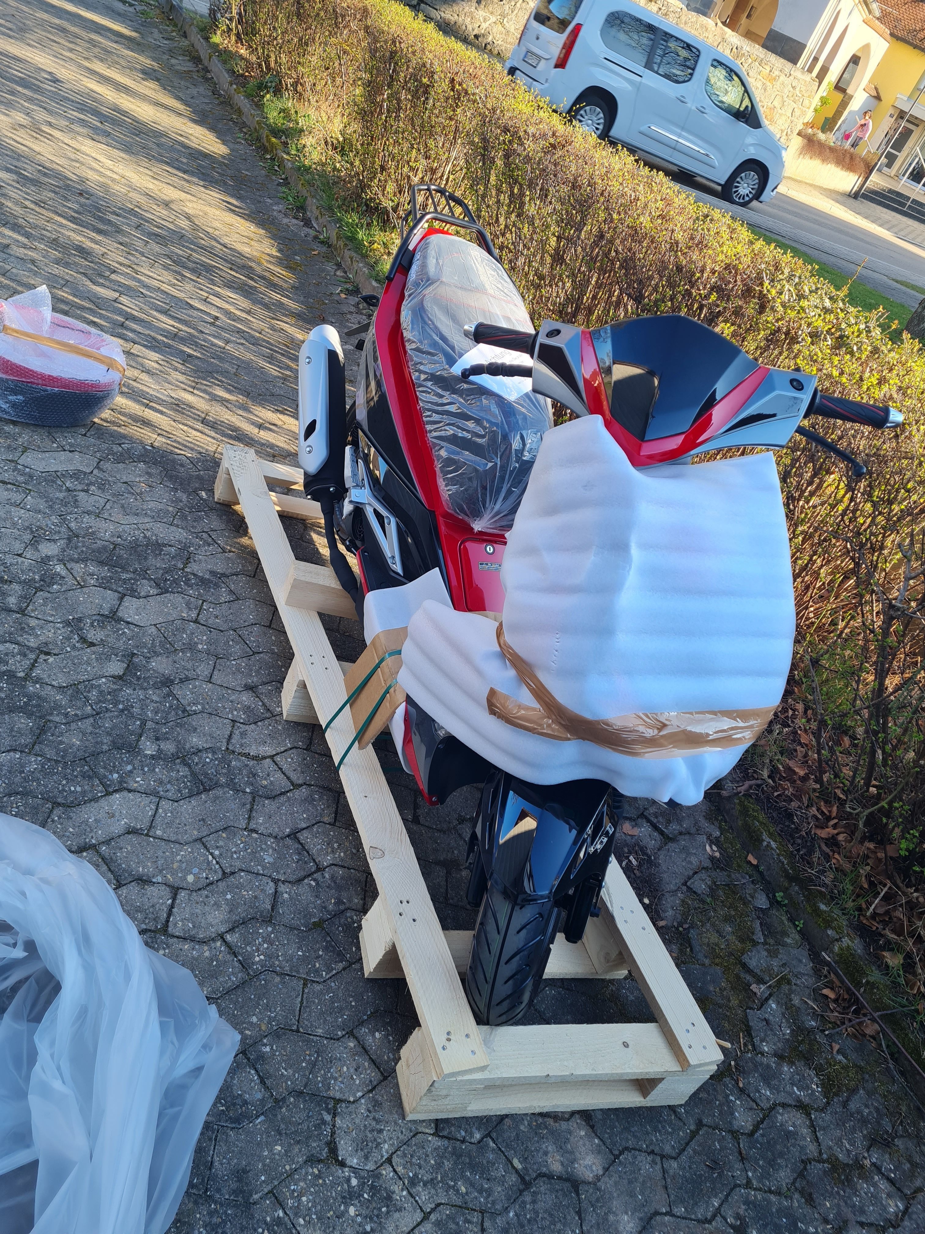 Die Spedition Lieferung war unkompliziert und frühzeitiger mir geliefert worden, alle Zubehör dazugehörigen Artikel wie daß Top-Case und die Spiegel wurden aus transportieren Gründe aus sicherheitshalber ab montiert und waren alle Zubehör dazugehörigen Artikel miteinander geliefert, der Roller ist neuwertig vom Werk aus Überpünktlich vom spätition Lieferanten bis zum an meiner Wohnungshaustür geliefert worden ist, bzw. bis zum bordschteinkante. Es ist Mängel frei und habe nix zu bemängeln. Für die innen Stadt Berlin ist der Roller praktisch und sehr solide gebaut worden, bzw. der Benzin Verbrauch ist sehr niedrig und der Motor ist fast lärmfrei. Ich kann diesen Roller mit gutem Gewissen es nur weiterempfehlen und Qualität sehr gut angekommen. Daumen hoch für den Roller einfach Top.