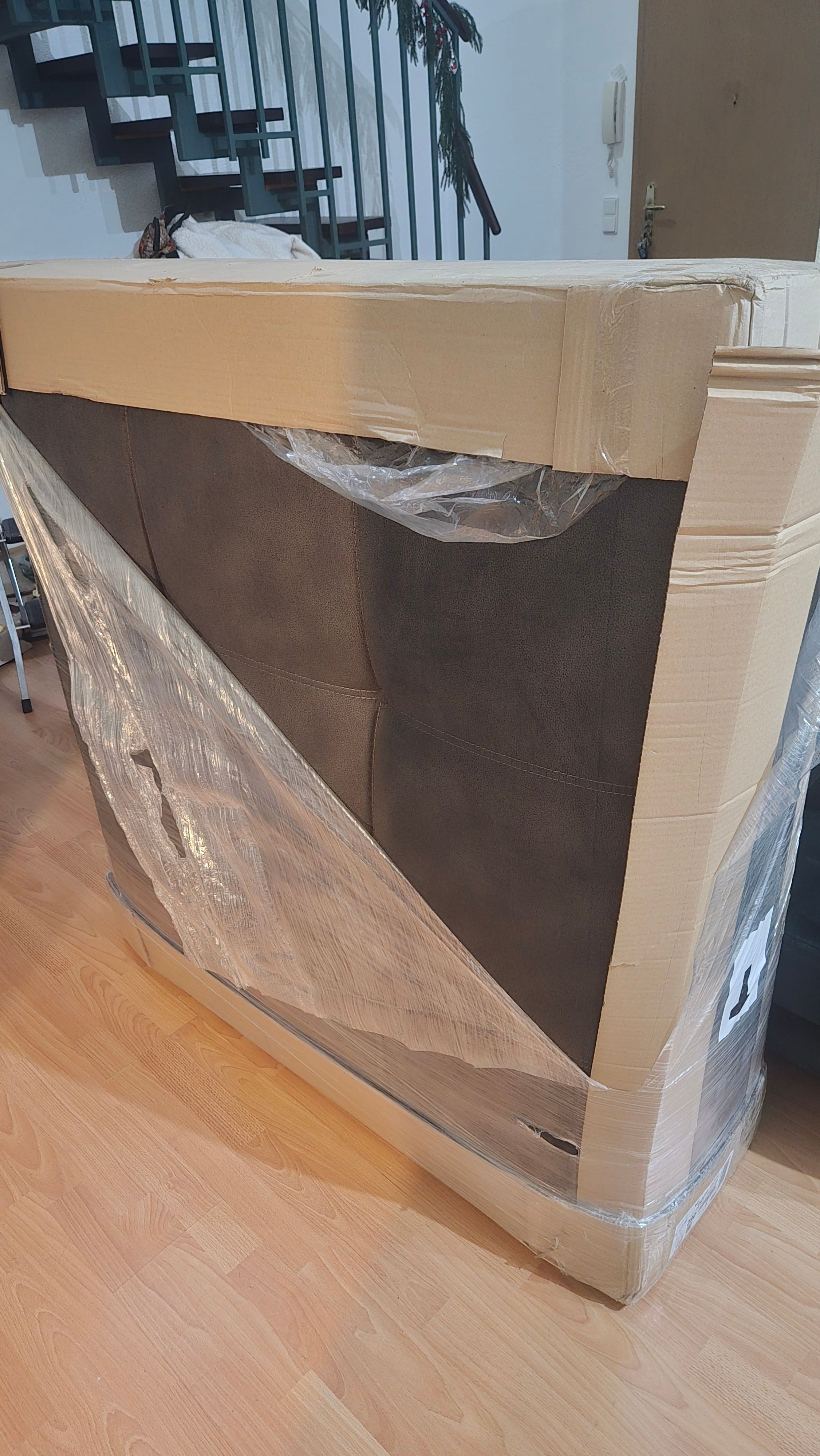 Sie kam schnell und das Paketwurde vor der Haustür abgestellt, super. Ausgepackt, 4 Füße mit 8 Schrauben befestigt, Inbusschlüssel anbei, fertig. Tolle Qualität, man Liegt und Sitzt sehr gut. Bei diesem Preis ein Tolles Teil. Super und empfehlenswert.