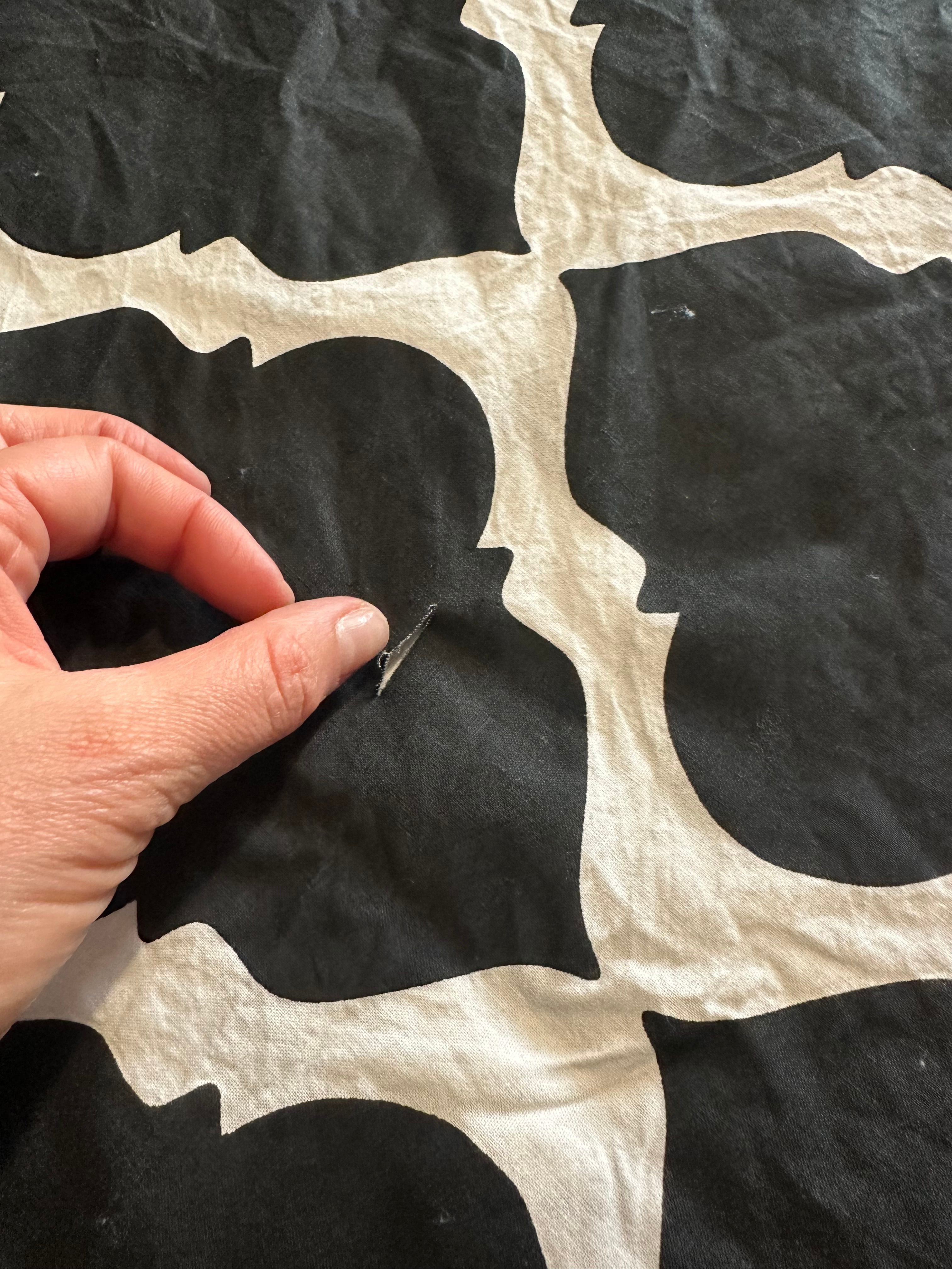 Die Bezüge sind nach der wäsche etwas aus der form geraten. Was ich leider auch erst später entdeckt habe, sind Webfehler im Stoff.