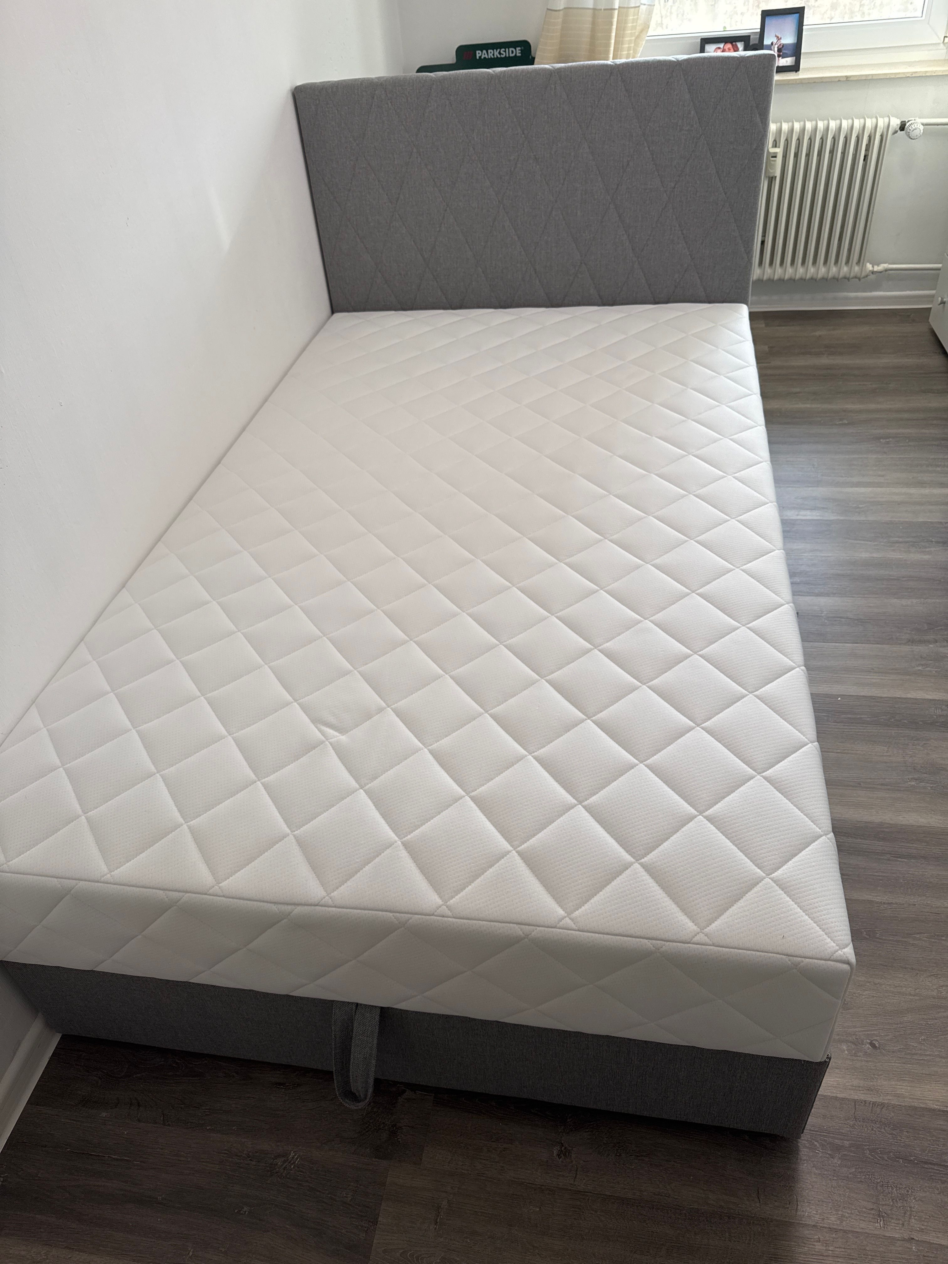 Tolles Boxbett, sehr praktisch mit Bettkasten! Spannbettlaken nur schwer über die Matratze zu ziehen, da Matratzen Befestigung am Kopfteil im Weg ist. Ansonsten alles top!