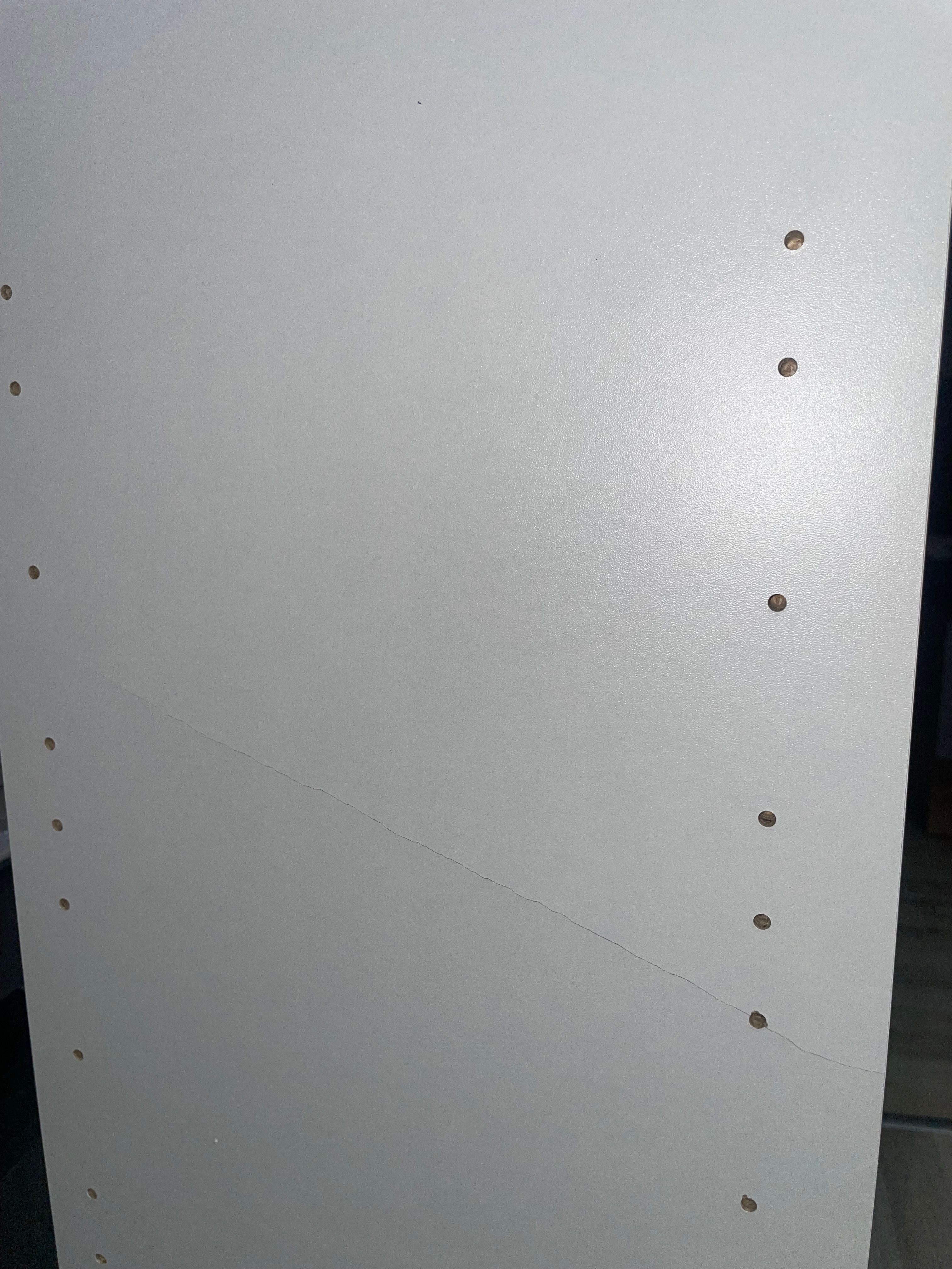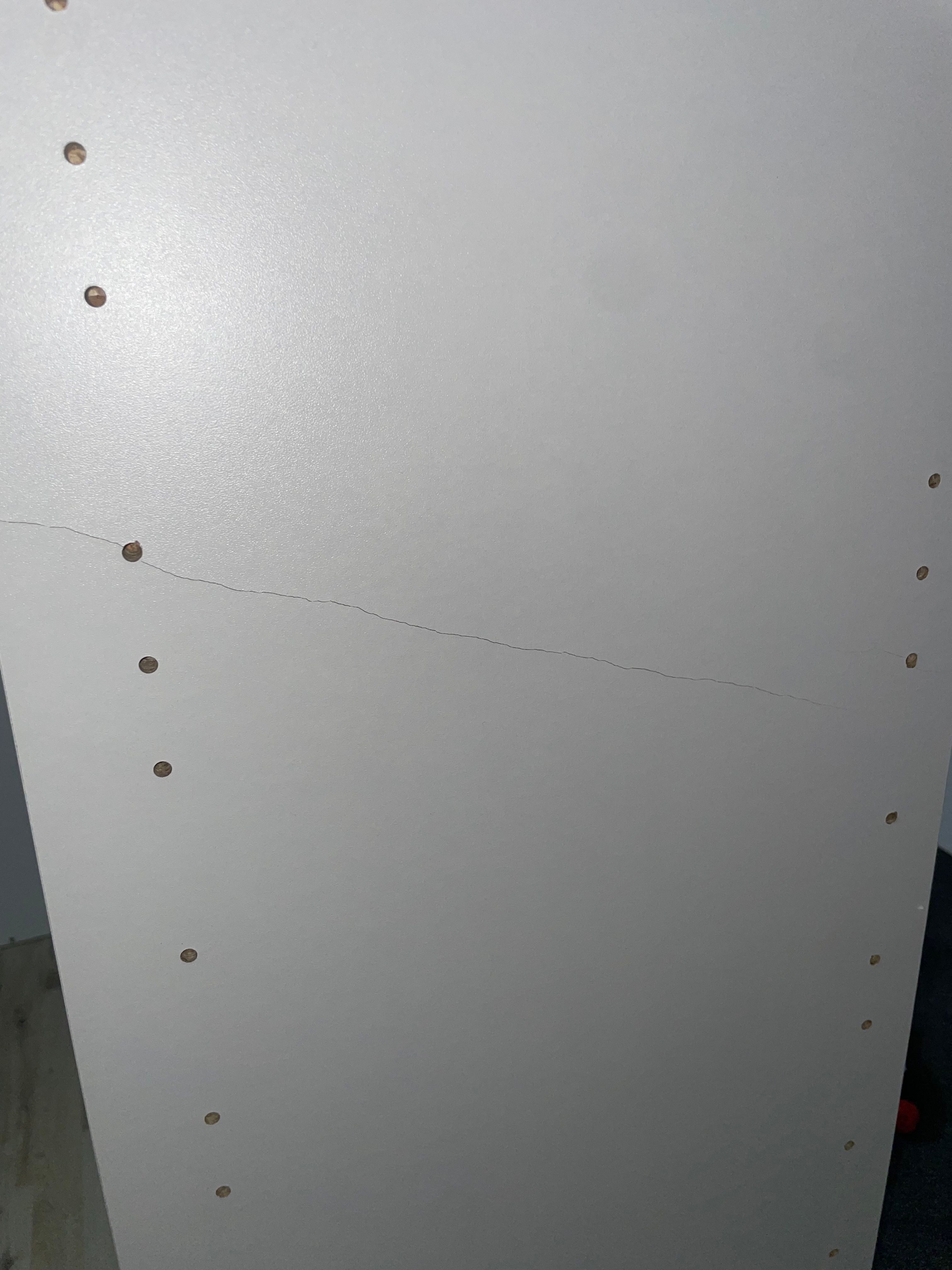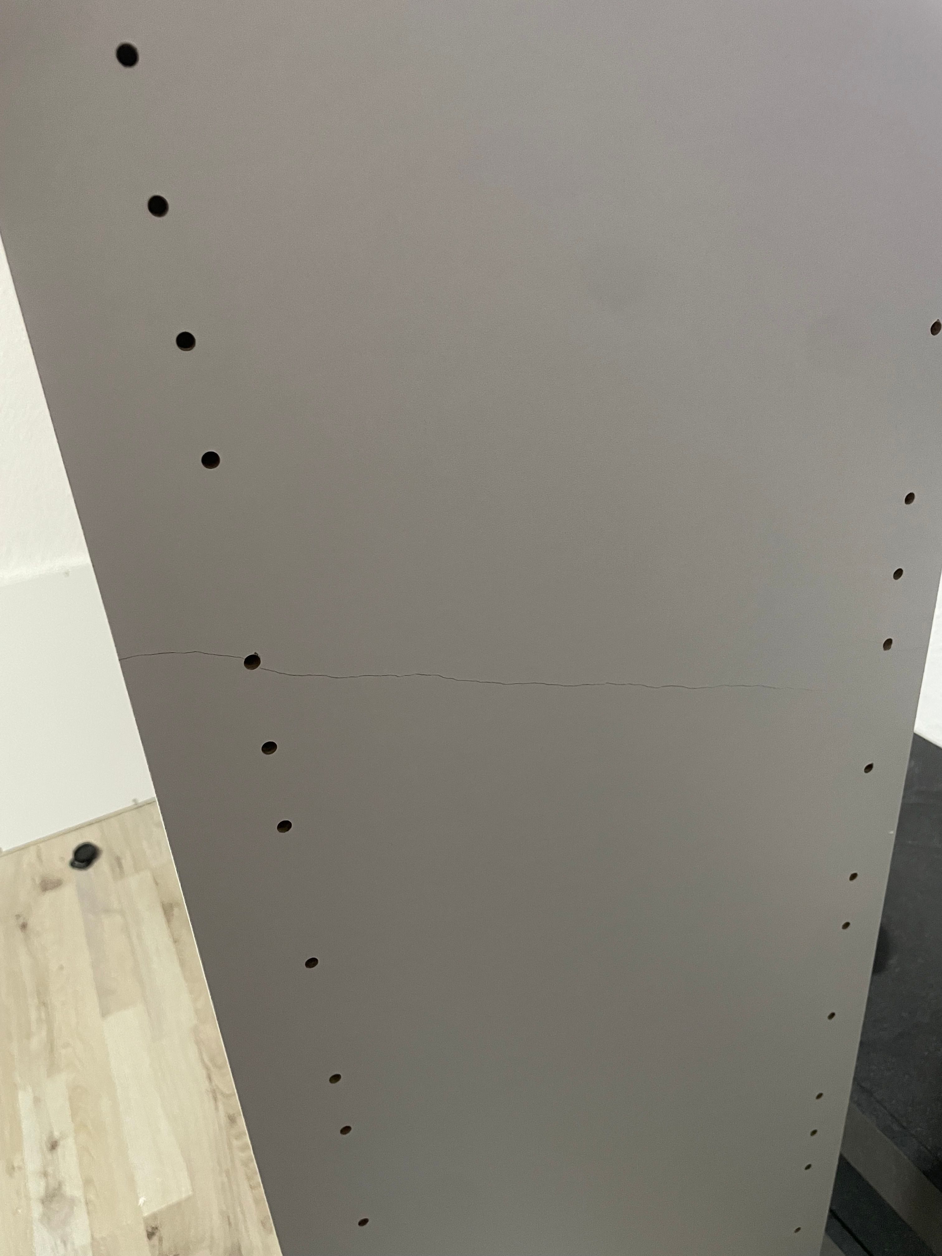 Beide Seitenteile vom Schrank hatte an der Innenseiteoben un unten jeweils zwei Bruchstellen, die rechte Seite war nach außen verbogen, sodass die Tür nicht richtig schließt. Werde meine Möbel lieber vor Ort kaufen.