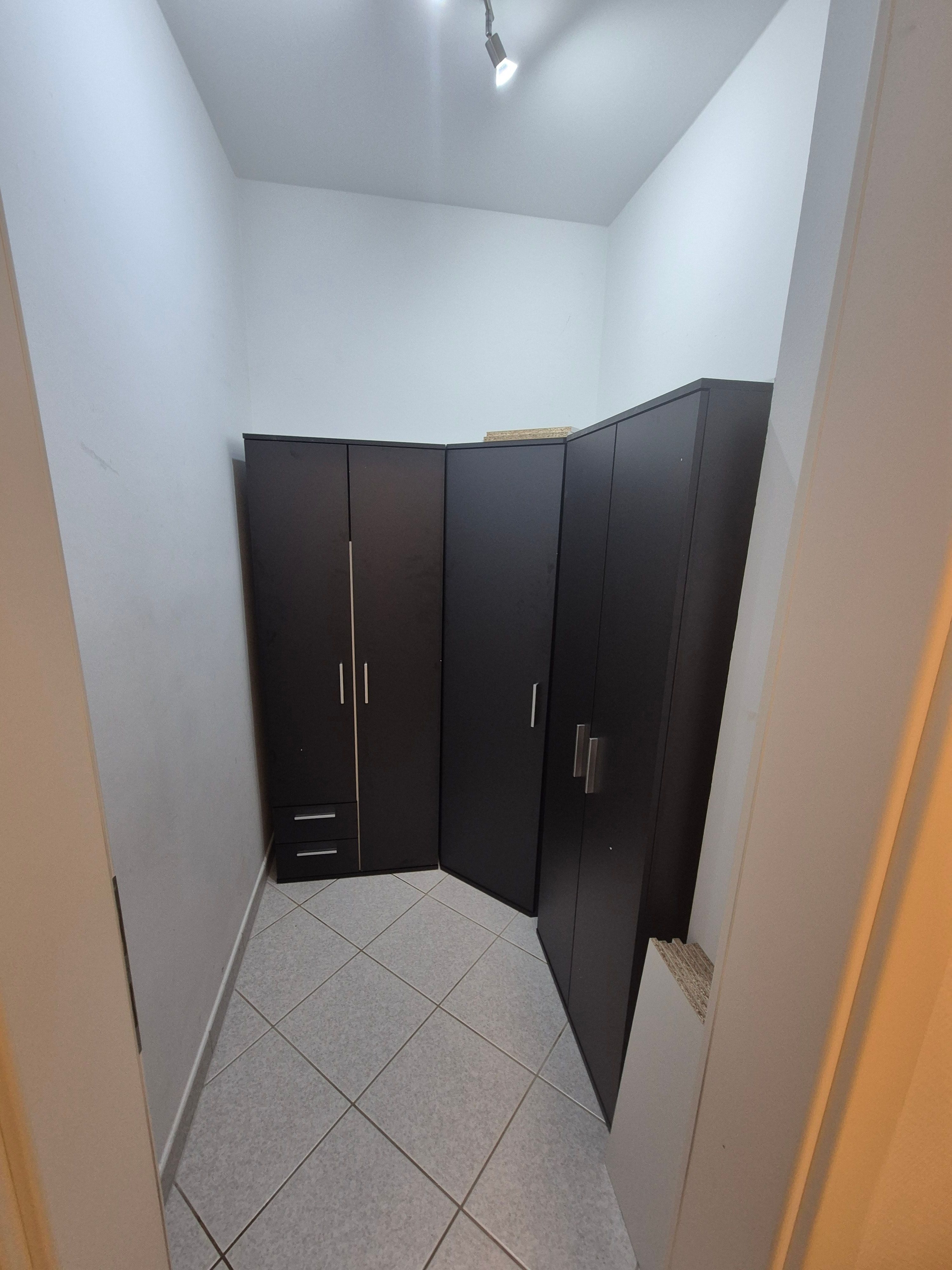 Schrank ließ sich schnell aufbauen, Platz ausreichend. Passt in jede Ecke.