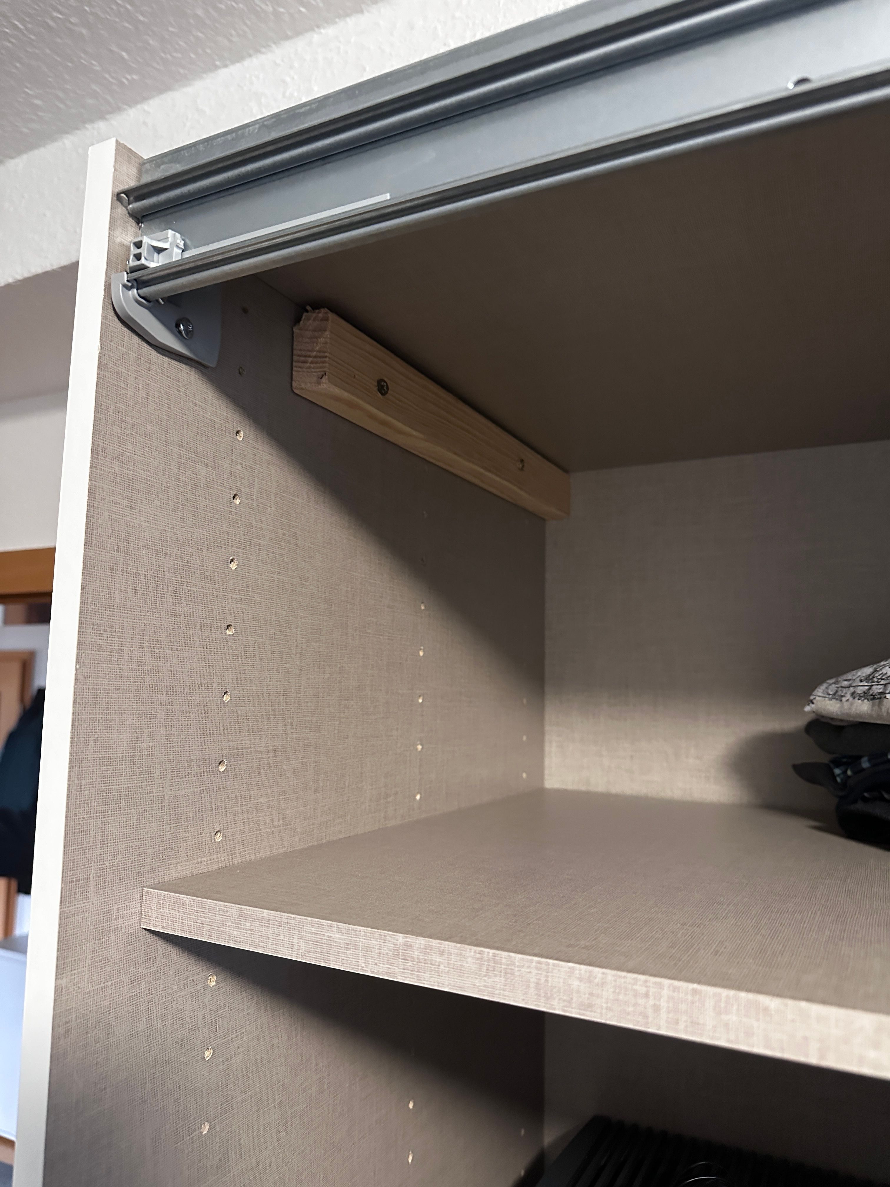 Höhenverstellbare Füße sollten bei einem Schwebetürenschrank eigentlich selbstverständlich sein, hat er aber nicht. Es ging mit etwas Aufwand aber auch so.
