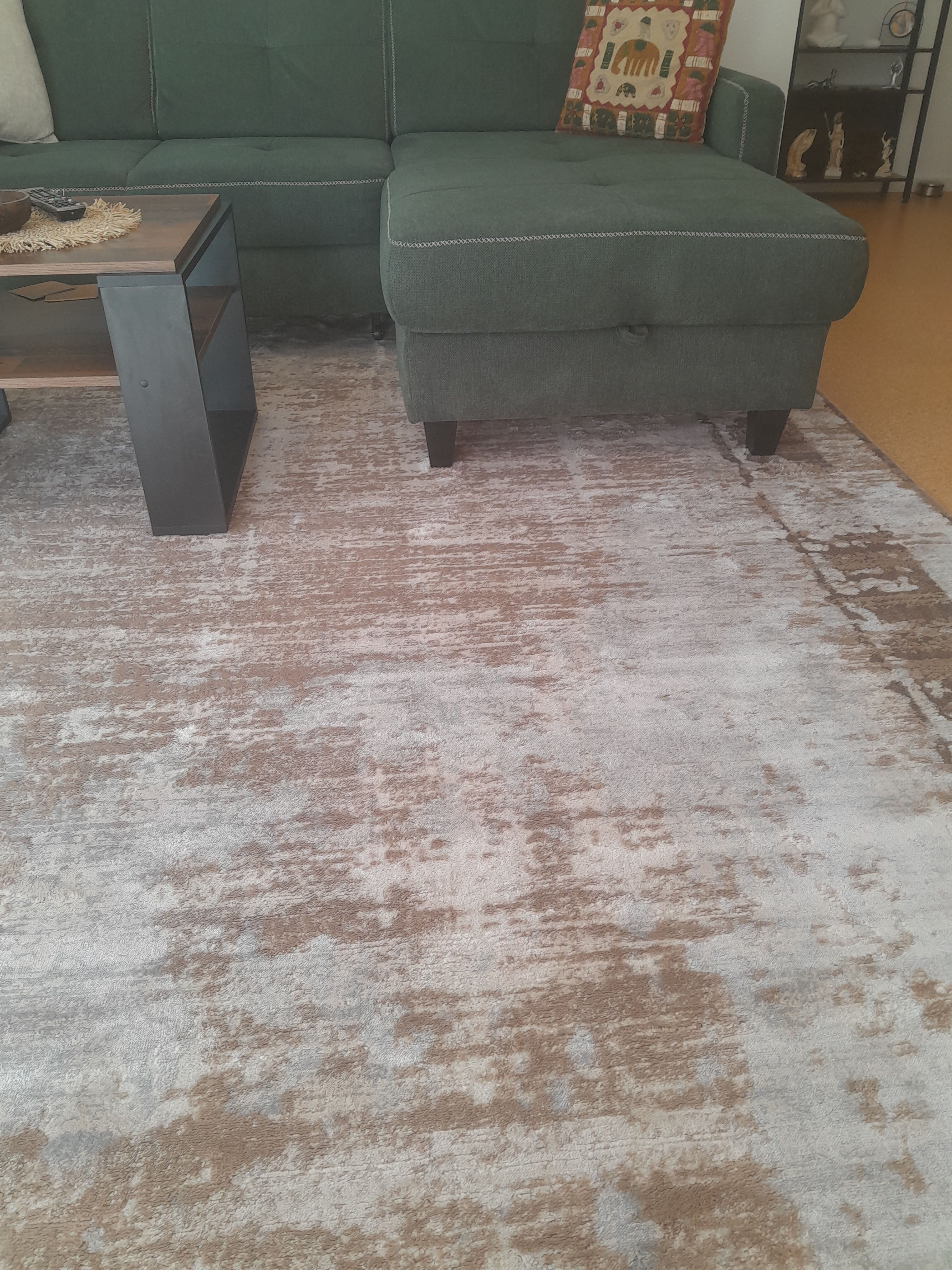 Super schöner Teppich. Ein wenig rutschig, ich habe ihn aber unter dem Sofa befestigt