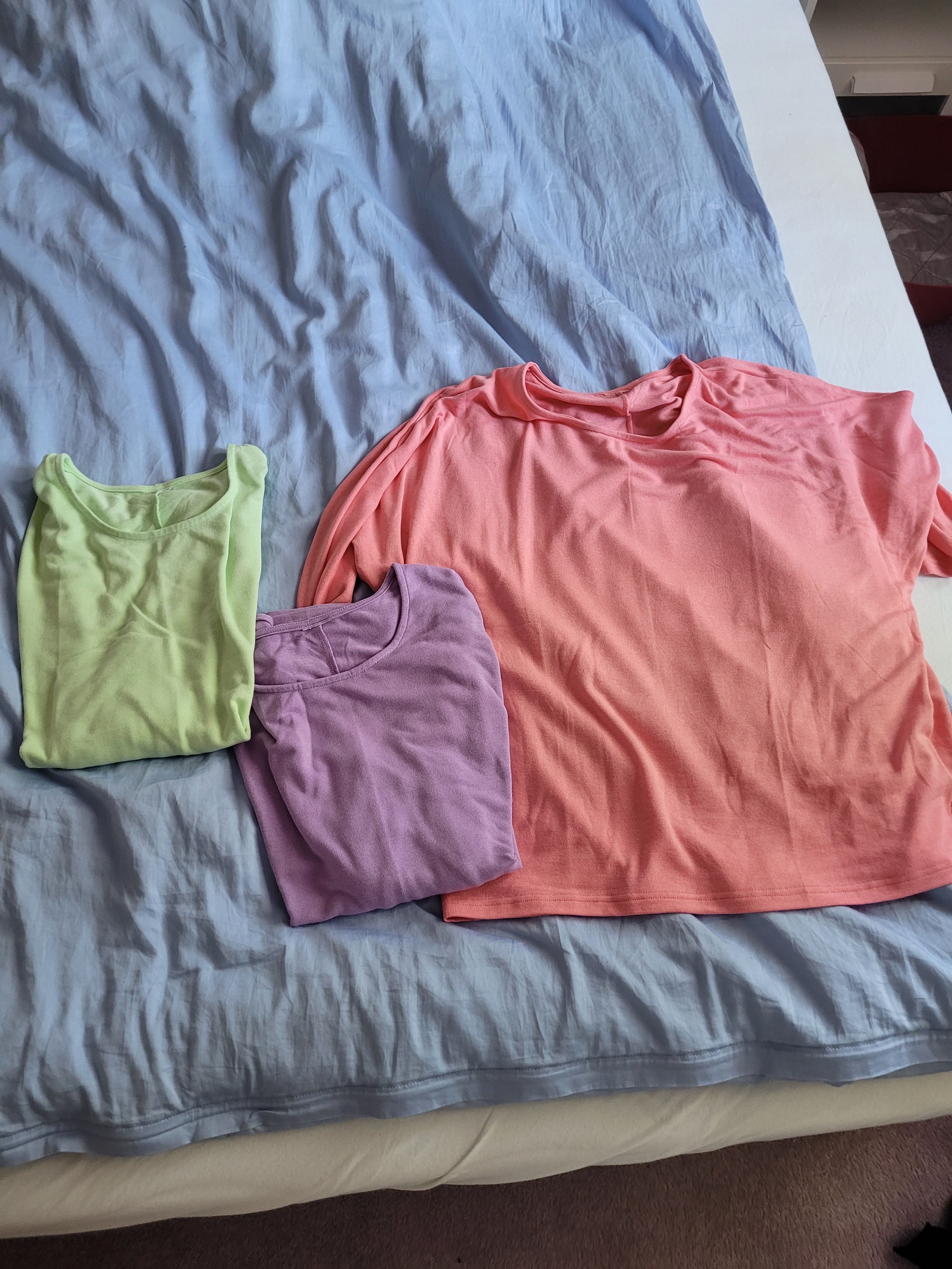 Ich bin so sehr begeistert. 🤩 Ich habe das Oberteil in 3 verschiedenen Farben. Am liebsten würde ich alle kaufen. Ich bin 171 cm und wiege 60 Kg. Habe mich für Grösse 40/42 entschieden, da es so mein kleines Bäuchlein versteckt. Wer keinen Bauchansatz hat, kann sicher eine Nr. kleiner bestellen. 😅 Der Stoff sitzt locker und sanft auf der Haut. Kein Kratzen.