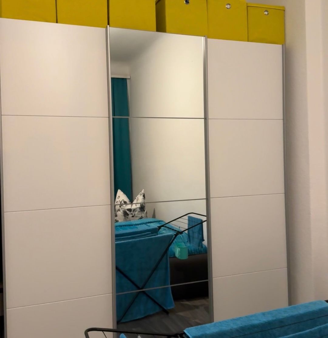 Ich werde diesen Schwebetürenschrank immer wieder kaufen, bei jeder Änderung oder Umzug. Die Bestellung war Ordentlich nach der Eingabe und kamen Sauber zu. Die Montage war relativ einfach, wir waren 2 mit Hilfe unserer 14 Jährigen Sohn, haben die Einleitung genau verfolgt und Schritt für Schritt ist der Schrank in 5 Stunden aufgebaut. Dieser Schrank verstaut unglaublich viel und alles ist ordentlich. Es Passt für meine 2 Söhne und habe eine Seite für Winterjacken Garderobe orientiert. Ich habe noch 2 extra Legeboden bestellt für extra Bettwäsche usw.. Also auf jeden Fall weiter zu empfehlen.