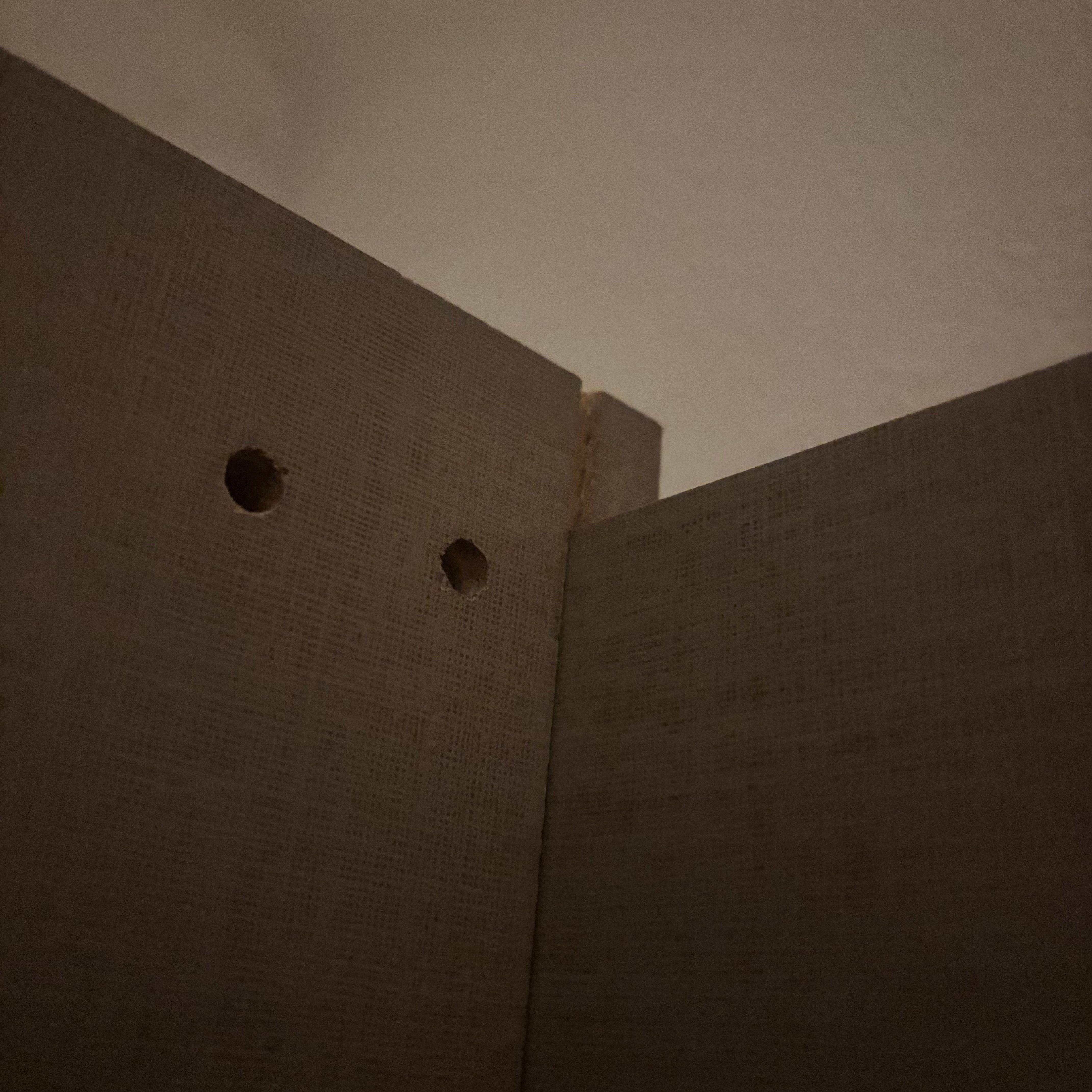 Bodenplatte war nicht richtig vorgebohrt, deshalb konnte Schrank nicht komplett aufgebaut werden.