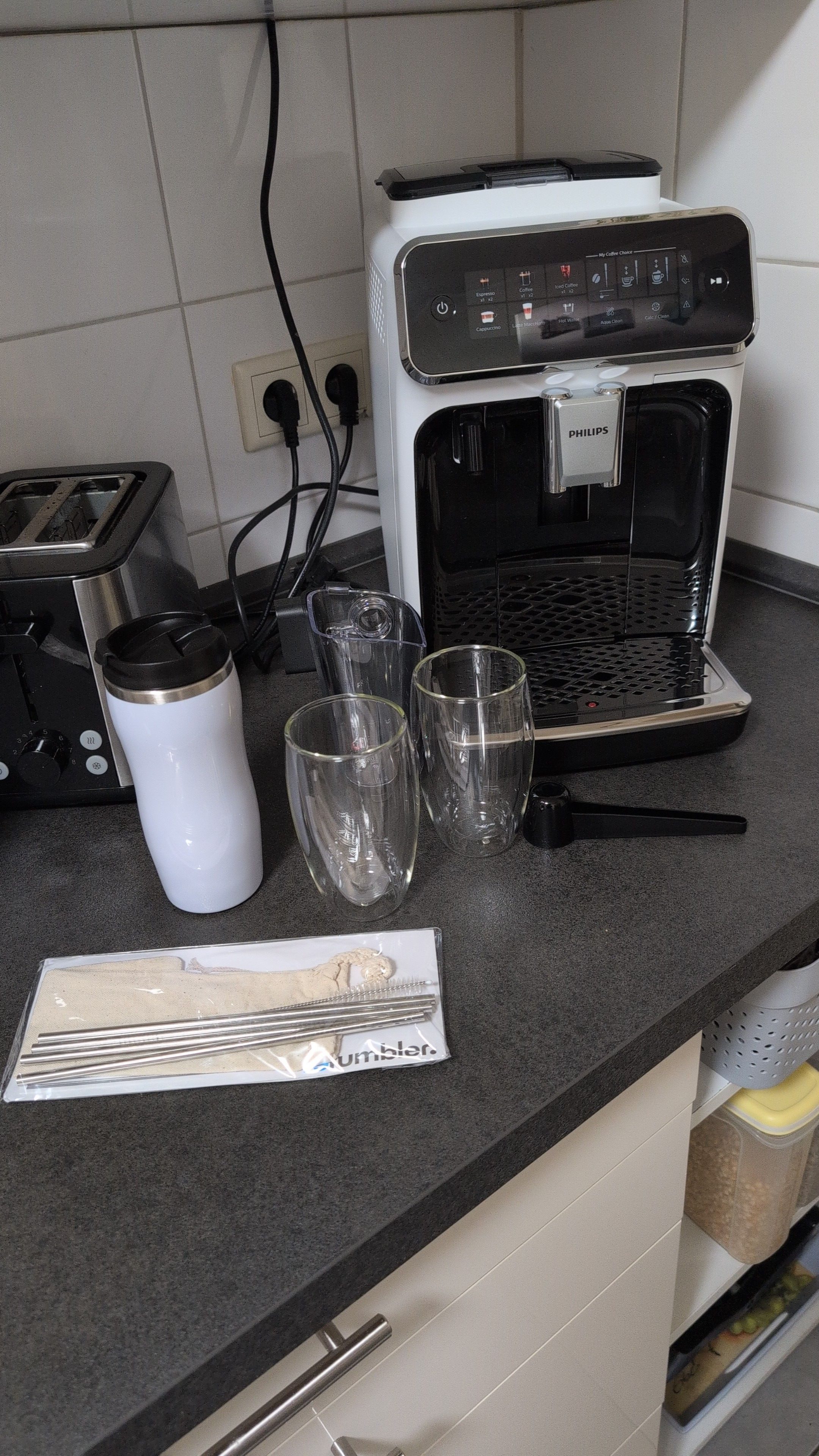 Das einzige was wir tatsächlich unnötig finden ist die "Eiskaffee" Funktion, hier wäre die Option einfach nur heiße Milch zu bekommen besser gewesen. Das Set was man als Goodie dazu bekommt ( Gläser, Strohhalme etc. ) ist echt toll.