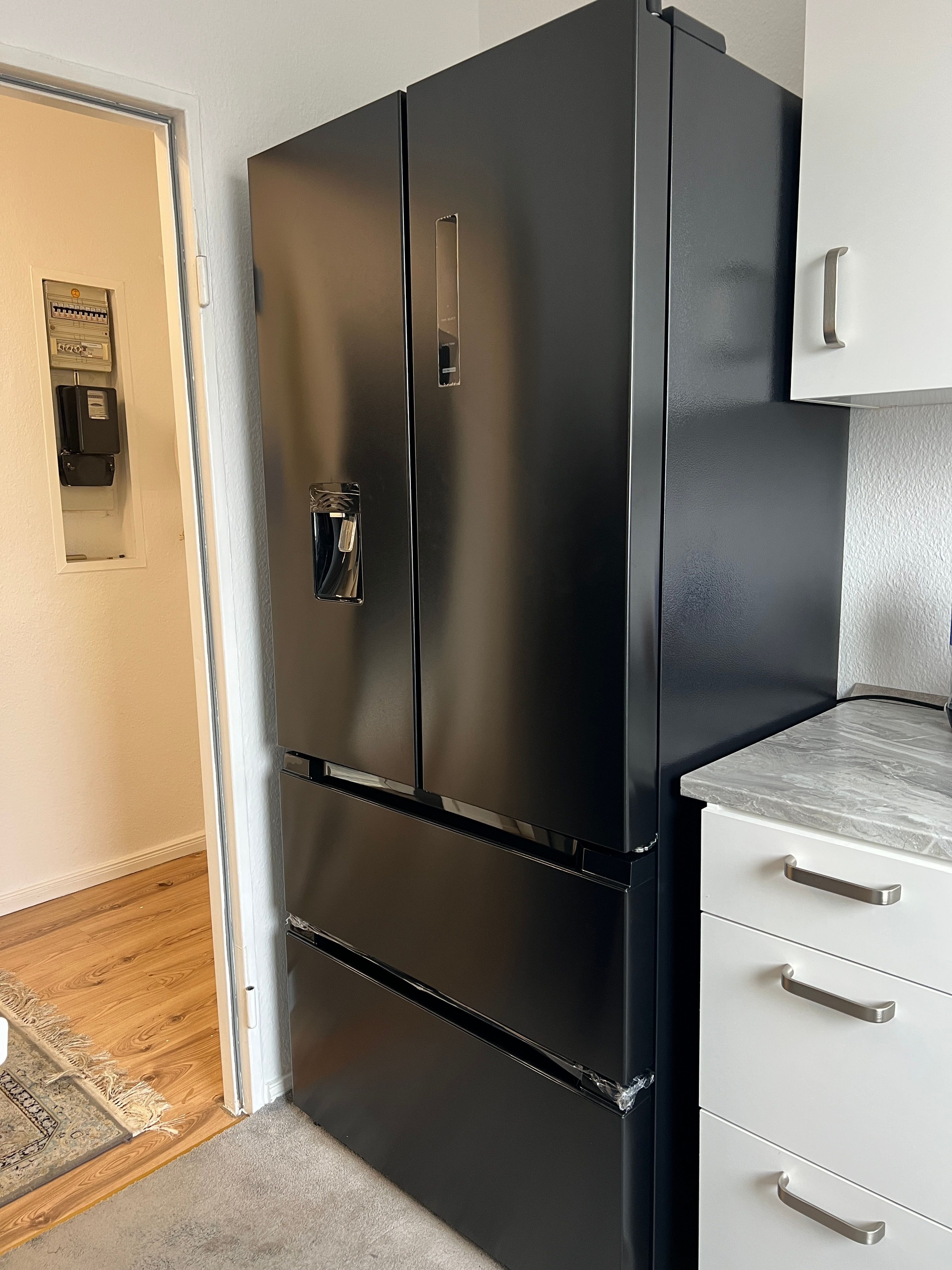 Ich liebe unseren neuen Kühlschrank. Kein Vergleich in Sachen Platz zu meiner alten Kühl-/Gefrierkombi, von der ich mich allerdings noch nicht trennen konnte, sie tut an einem anderen Platz weiterhin gute Dienste. Beim neuen Kühlschrank hat man jede Menge Platz! Die Ablagen/Schubfächer für Obst/Gemüse und Fleisch sind super! Richtig gut finde ich die separate Einstellung der Temperatur für die Fleischbox. Ursprünglich wollte ich keine Schubfächer mehr beim Gefrieren, das war mit dem alten Kühlschrank immer recht umständlich. Hier ist aber soviel Platz, dass nichts staut und mit den oberen flachen Anlagen gibt’s kein „Gerümpel“ mit den Tupperdosen mehr! Die Eiswürfelbox ist auch spitze, geht ganz einfach und schnell. Wenn man sie nicht braucht, einfach raus damit und es gibt nochmal extra Platz im Gefrierfach! Der Wasserspender wird regelmäßig genutzt, so braucht man nicht immer Eiswürfel. Einzig habe ich die Getränkeablage aus meinem alten in den neuen Kühlschrank mit integriert, da wir immer viele Flaschen zum kühlen haben. Ein großes Lob an die zwei starken Männer von Hermes. Bei uns verlief das total reibungslos, sie waren echt schnell und haben sich viel Mühe gegeben. Der Kühlschrank hat ein Leergewicht von 130kg und unser Weg bis in die Küche ist alles andere als leicht, aber die Jungs haben das echt super gemacht! Vielen Dank dafür und ich kann den Kühlschrank definitiv nur weiterempfehlen und dank Otto ein echtes Schnäppchen!!! 👍👍👍