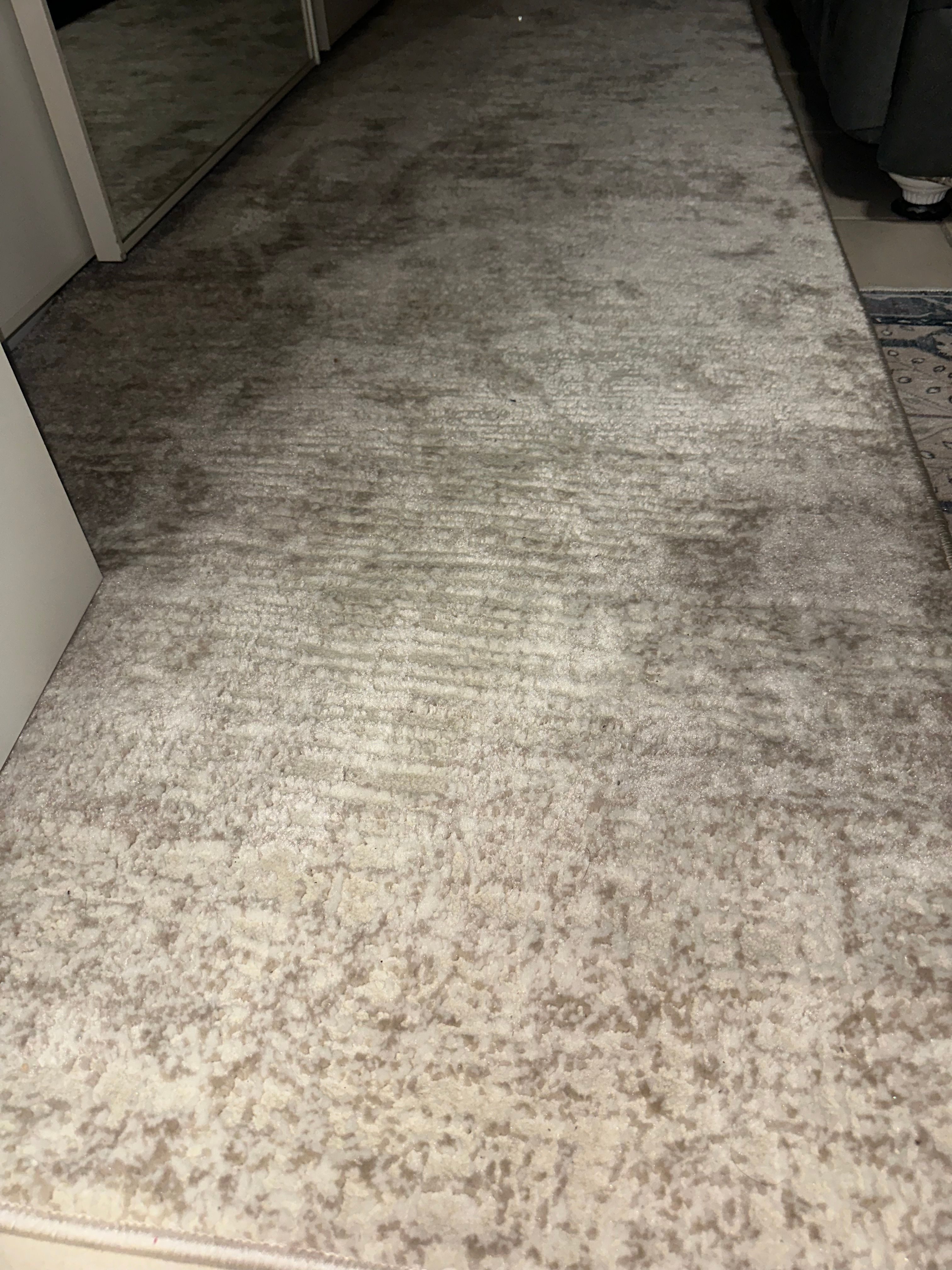 Erst einmal stinkt der Teppich enorm nach Öl/Schmierfett und zum anderen sieht der Teppich komplett anders aus, als auf den Fotos. Er ist nicht einfarbig und hat auch nicht gezeigte "Vertiefungen". Er bleibt aber, ich hoffe nur das der Geruch weggeht...