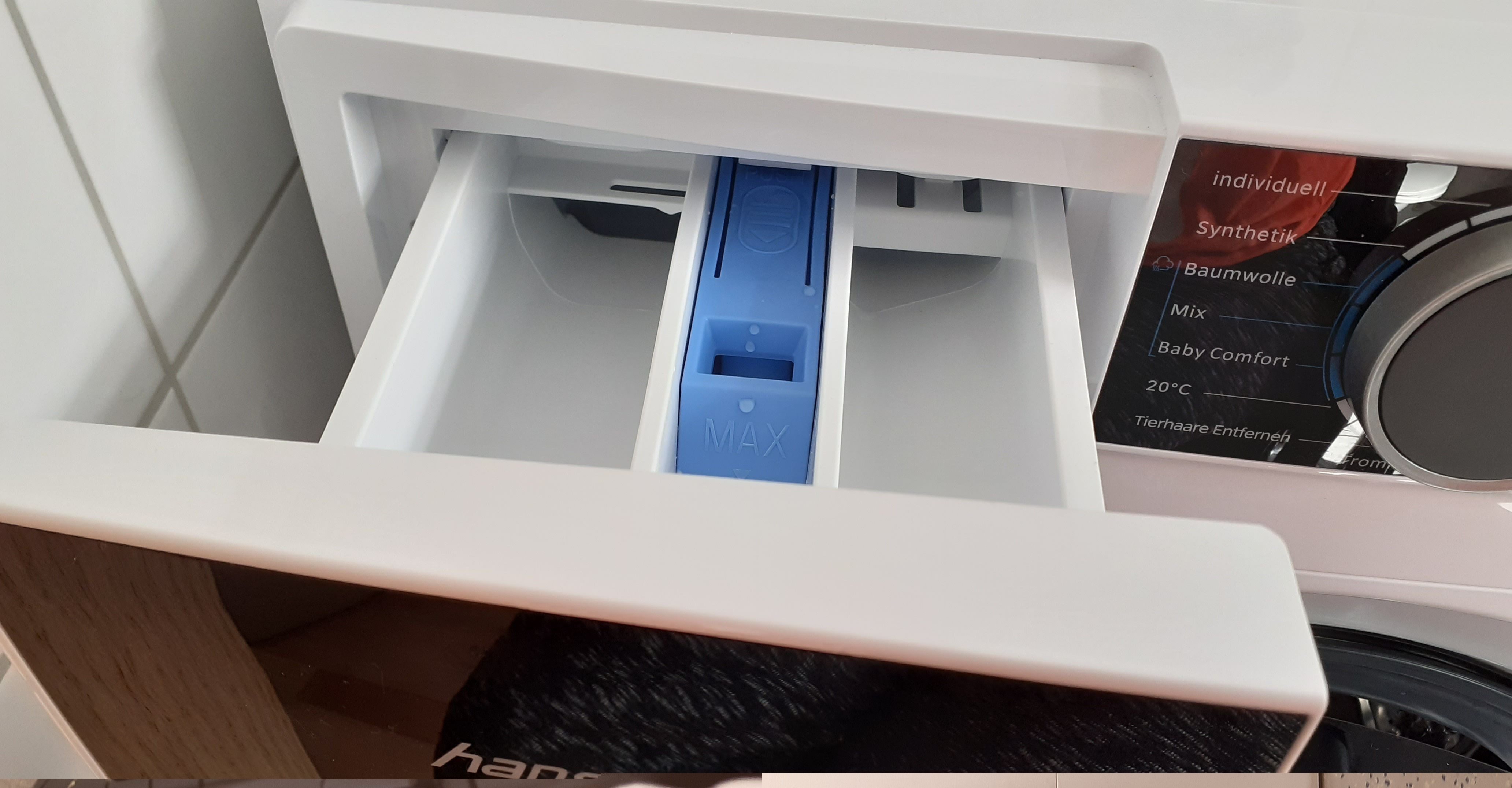 Fehlt im Waschmittelfach eine blaue Kappe für Flüssigwaschmittel oder ist das so?