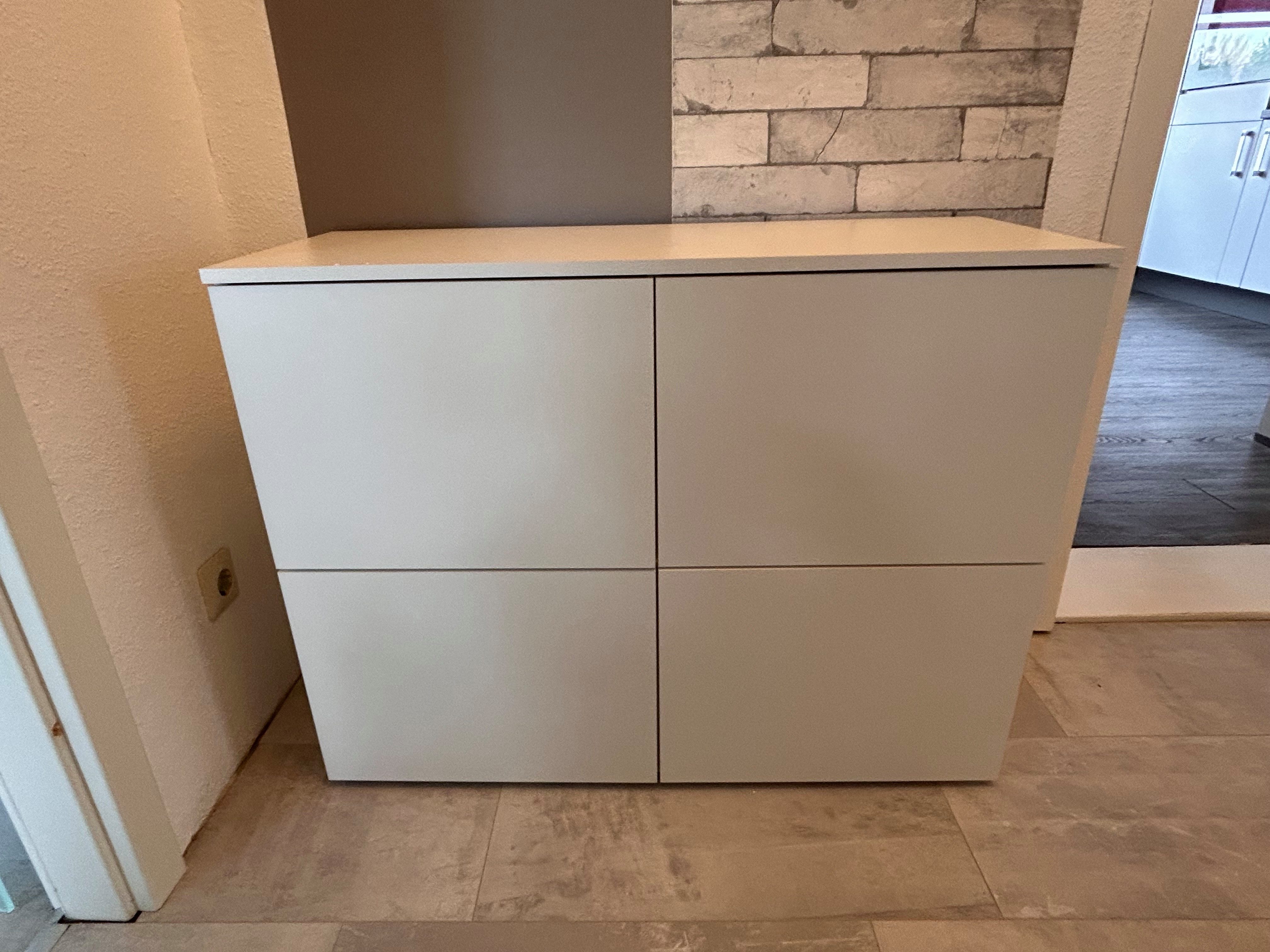 Ich habe zwei dieser Schränke in Matt Weiß bestellt, weil ich niedrige schränke als Schuhschränke gebraucht habe, wir Kinder haben, und ich von vornherein die Fronten überkleben wollte.