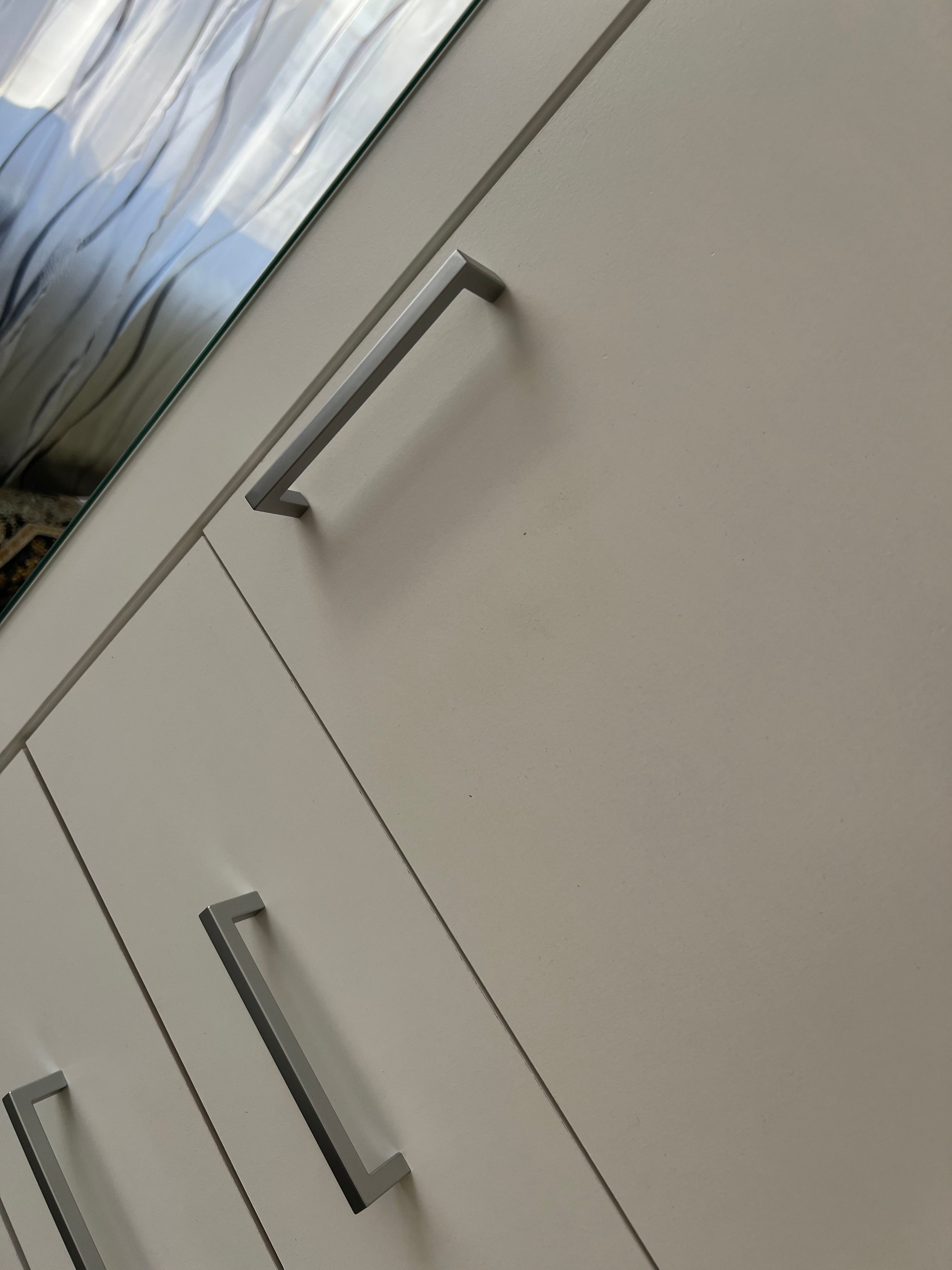 Aber ich mußte alle Schaniere erneuern ,weil die vom Schrank Dreck waren .und eine spiegeltür ist wie ein Flitzebogen. Also würde mir jetzt 2maluberlegen so ein Schrank nochmal zu kaufen oder am besten aufbauen lassen.
