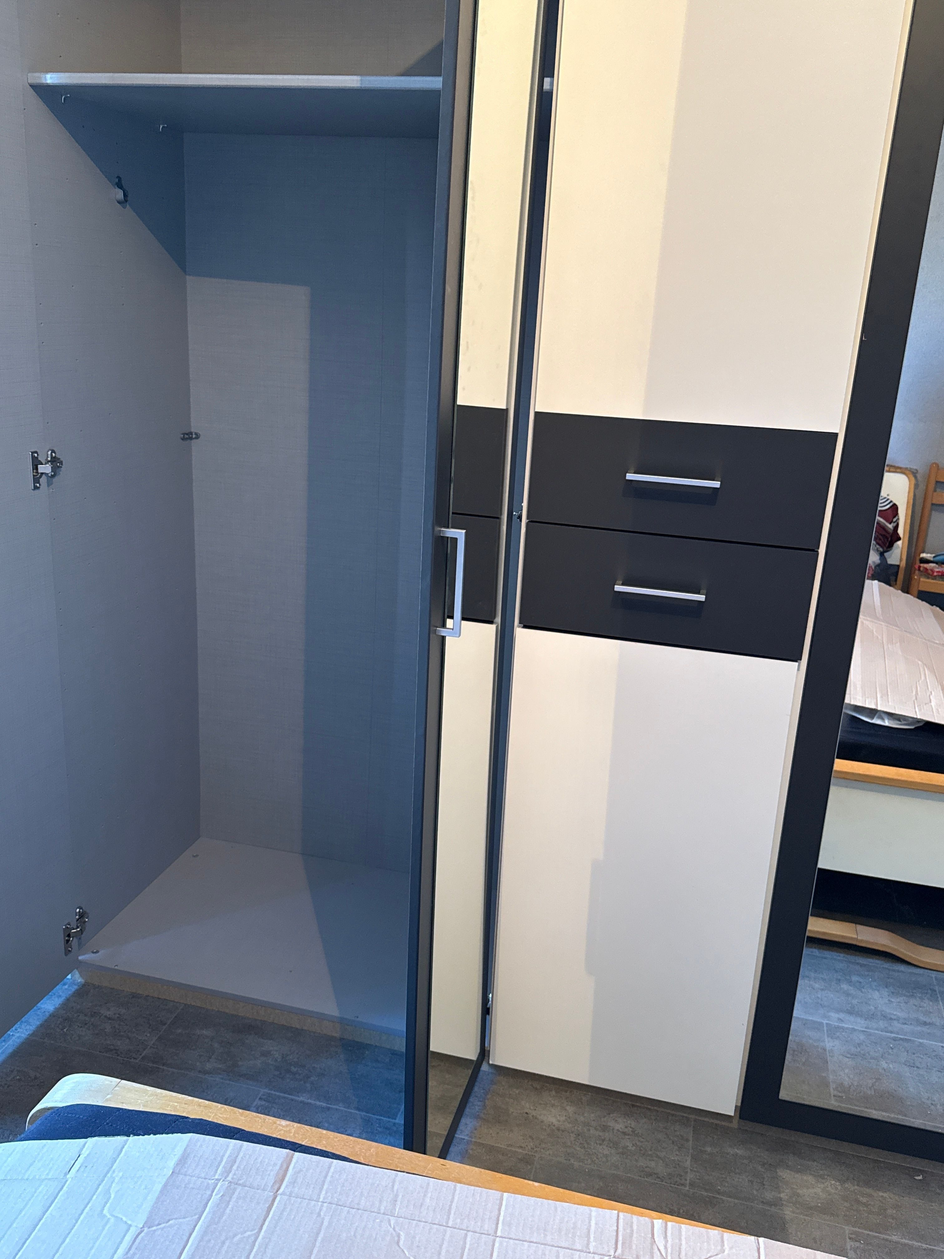Wir haben denn schrank bestellt, haben uns mega gefreut. Aber die zustellung ist ganz schlimm. Die türen vom schrank sind sehr krum, und die meisten löcher muss man selbst reinmachen. Die türen kann man nichtig zu machen oder schlagen aufeinnander weil sie zu krum sind. Falsch schrauben für die schublaben schiene